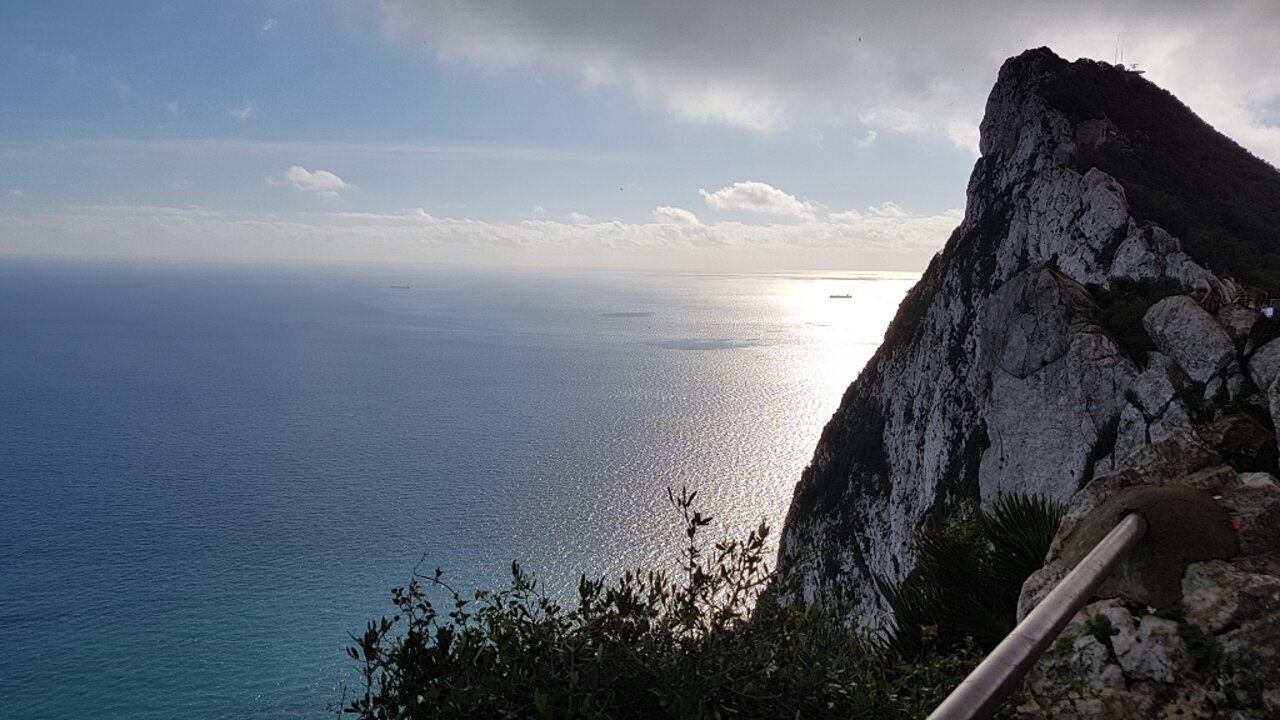 Gemeinsames Gruppenfoto mit Blick auf Gibraltar.