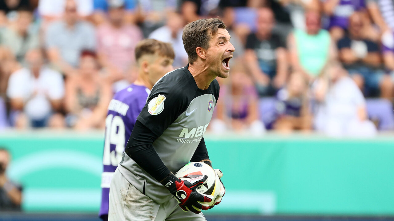 Auf der ersten Pflichtspiel-Niederlage 2024/25 lässt sich zweifellos aufbauen. Die Fans waren großartig, das 1:0 mustergültig herausgespielt und die Mannschaft einmal mehr um mutigen Fußball bemüht. Selbst als nach dem 1:3 der Glaube an das Wunder schwand, lag der Anschlusstreffer nach Eingaben von Marvin Stefaniak und Kilian Jakob mehrfach in der Luft. Nun gilt es, sich wieder auf die Liga zu konzentrieren. Mit dem nächsten Höhepunkt vor Augen: Dresden kommt. Mit der Leistung von Samstag muss den Veilchen vor dem Sachsen-Derby nicht bange sein. Darauf wies auch Martin Männel ausdrücklich hin, der Spieler des Spiels.