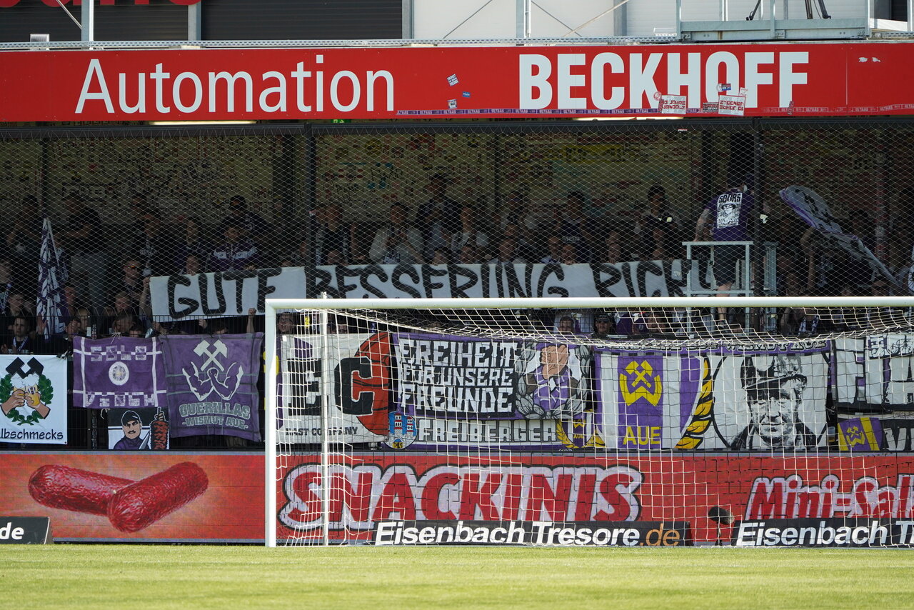 Nach einer desolaten ersten Hälfte reagierte Jens Härtel. Gleich drei Spieler nahm der Cheftrainer der Veilchen vom Platz. Tim Hoffmann, Pascal Fallmann und Sean Seitz kamen in die Partie, während die Lila-Weißen auch taktisch auf eine Dreierkette stellten. Die erhoffte Wirkung blieb jedoch aus. In der Sportclub-Arena spielte und wirkte nur der SCV. Steczyk und Taz beschäftigten Aue beinahe im Alleingang und nur dank der Rettungstaten von Rosenlöcher und Männel fiel kein frühes fünftes Tor. Nur mit großer Mühe konnte Aue Verls Sturmlauf stoppen und die Partie für einige Minuten beruhigen. Eigene Torchancen erspielten sich die Erzgebirger dabei aber nicht. Paroli boten nur die mitgereisten 400 Auer Fans, die trotz hohem Rückstand in der Sportclub-Arena den Ton angaben.
