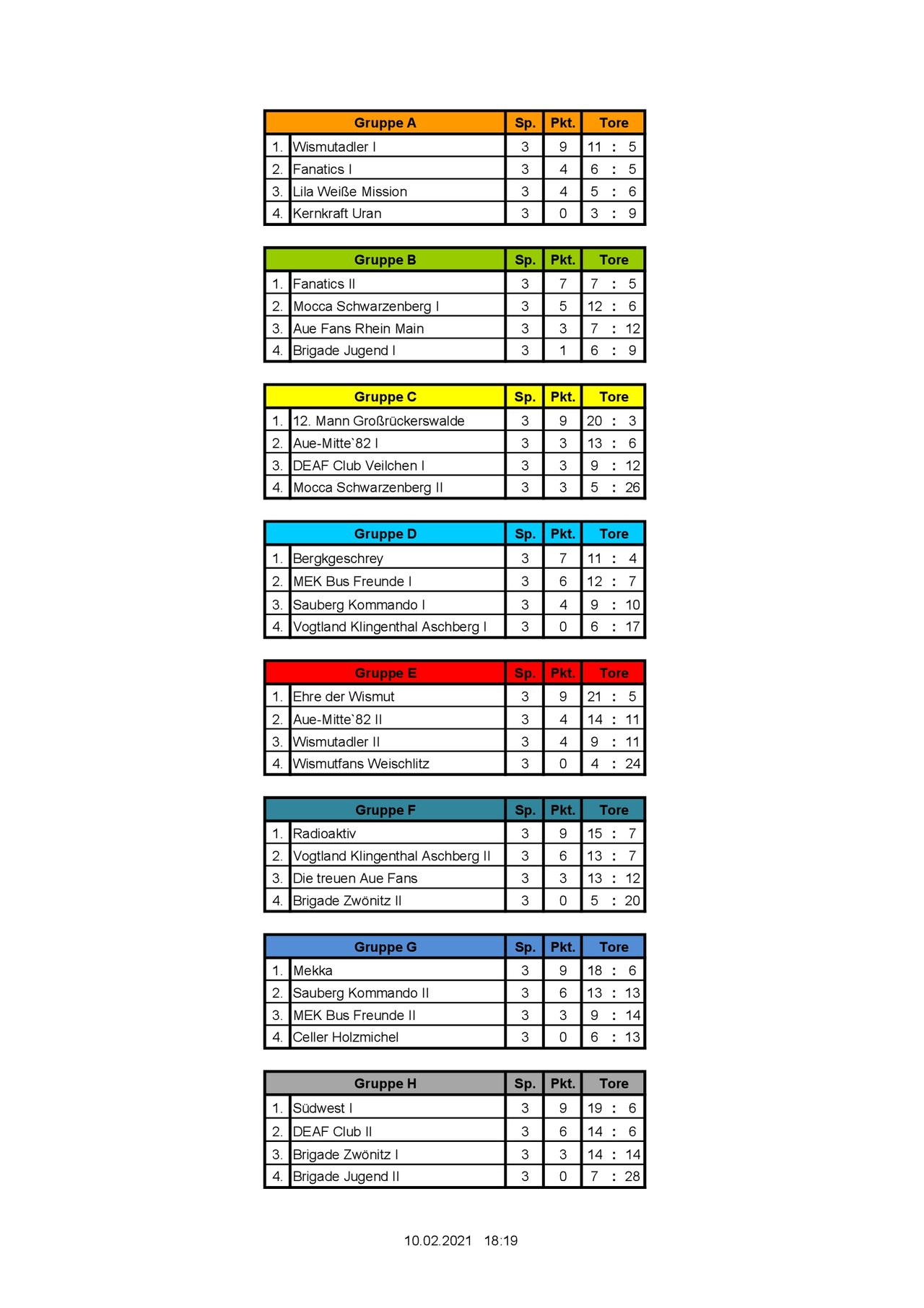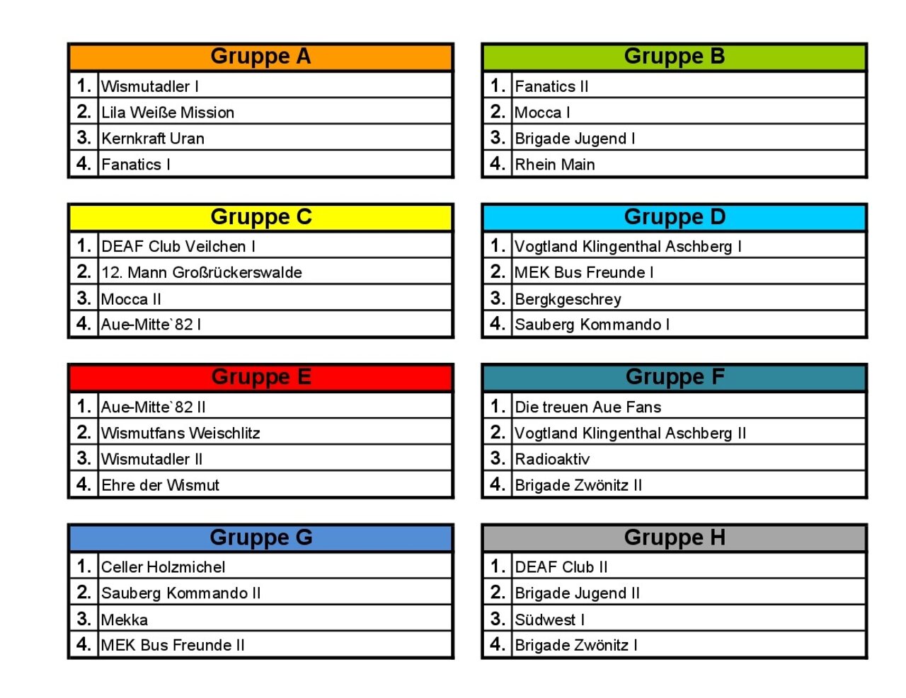 Das ergibt folgende Abschlusstabellen in der Vorrunde: