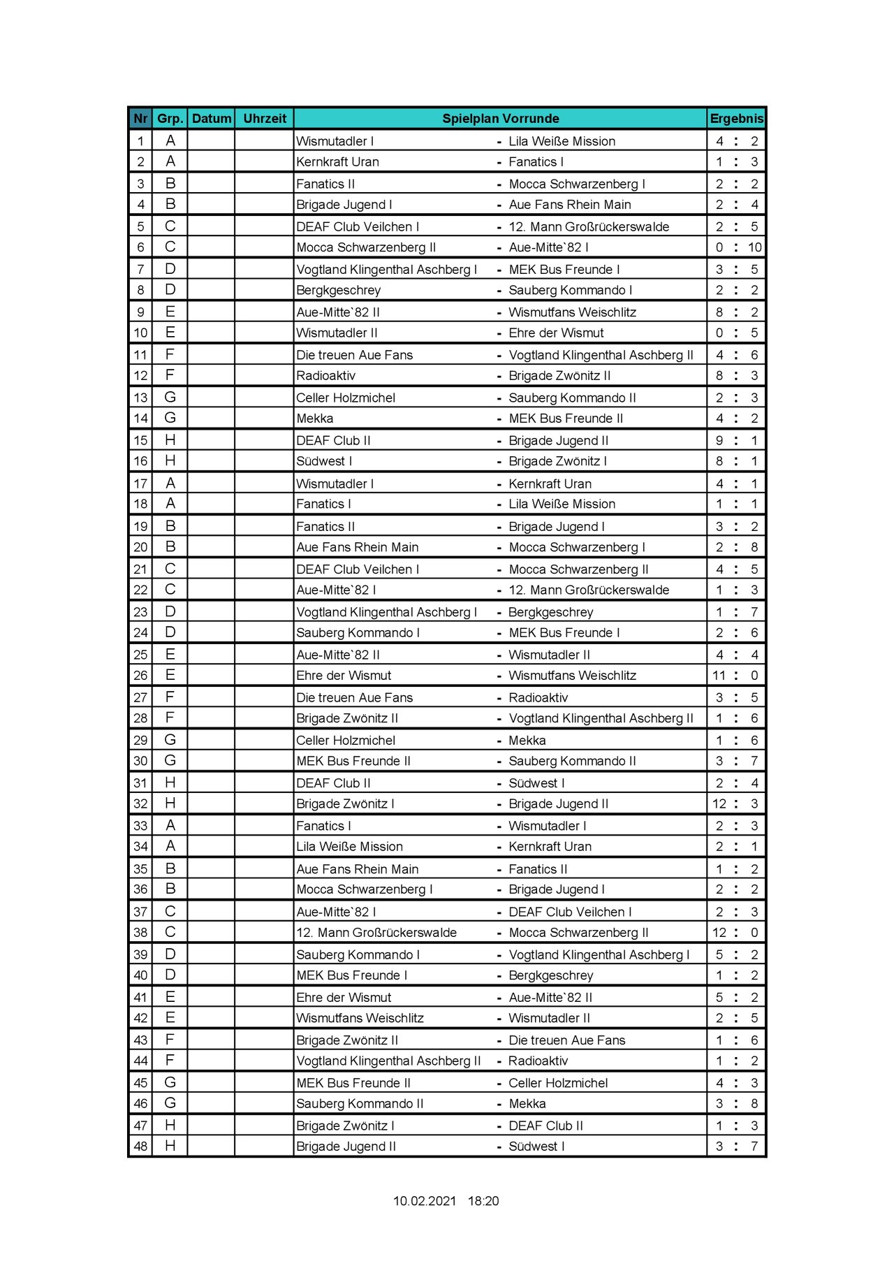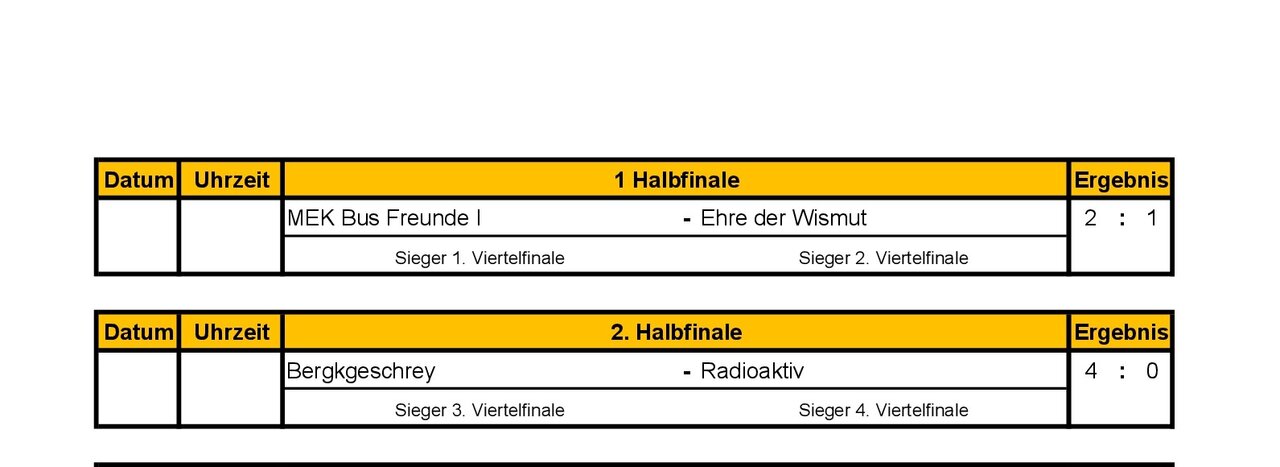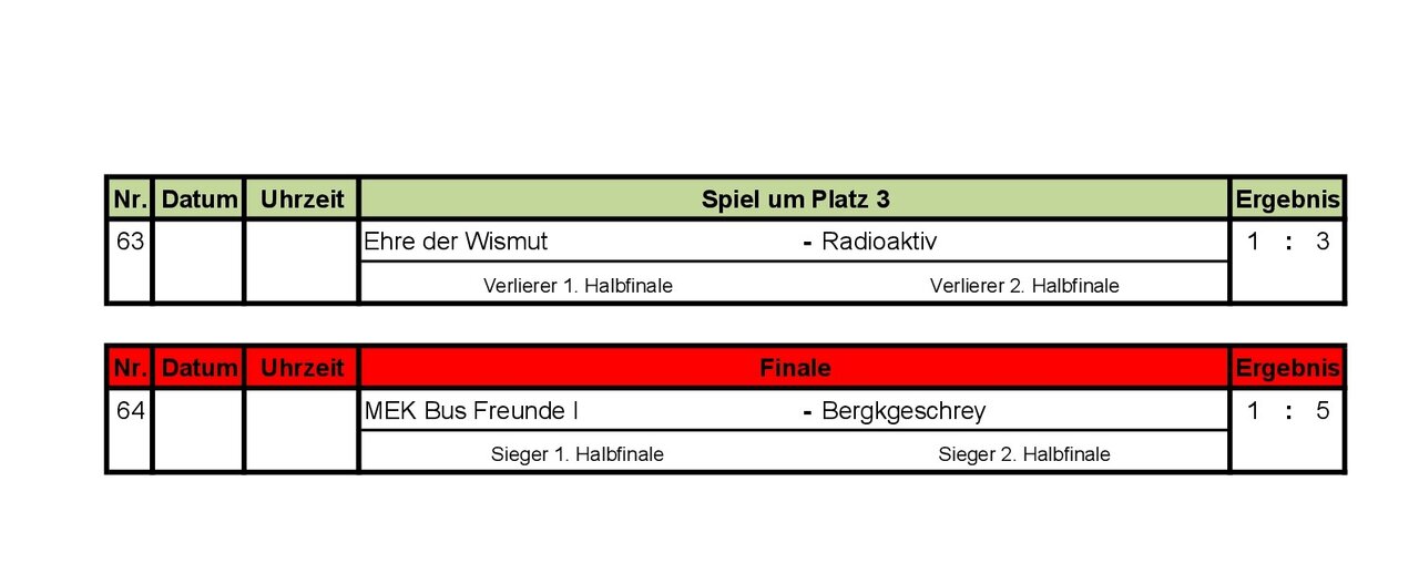 Das Spiel um Platz 3 zwischen "Ehre der Wismut" und "Radioaktiv" ist beendet. Radioaktiv gewinnt mit 3:1 das kleine Finale!