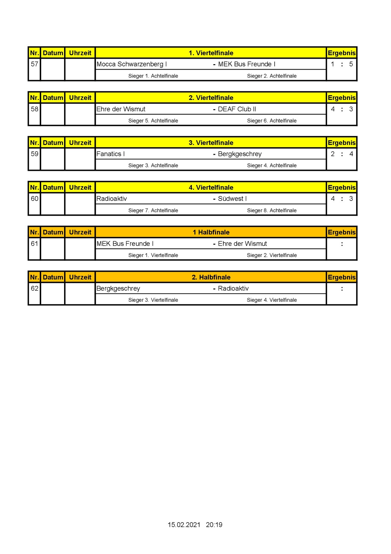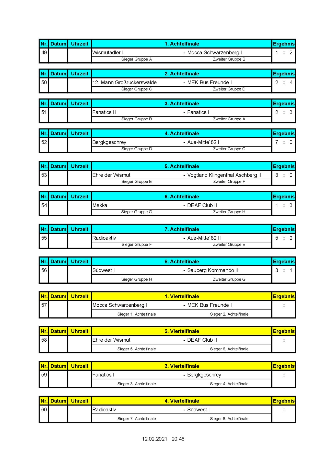 Daraus ergeben sich nun folgende Achtel- und Viertelfinalpaarungen: