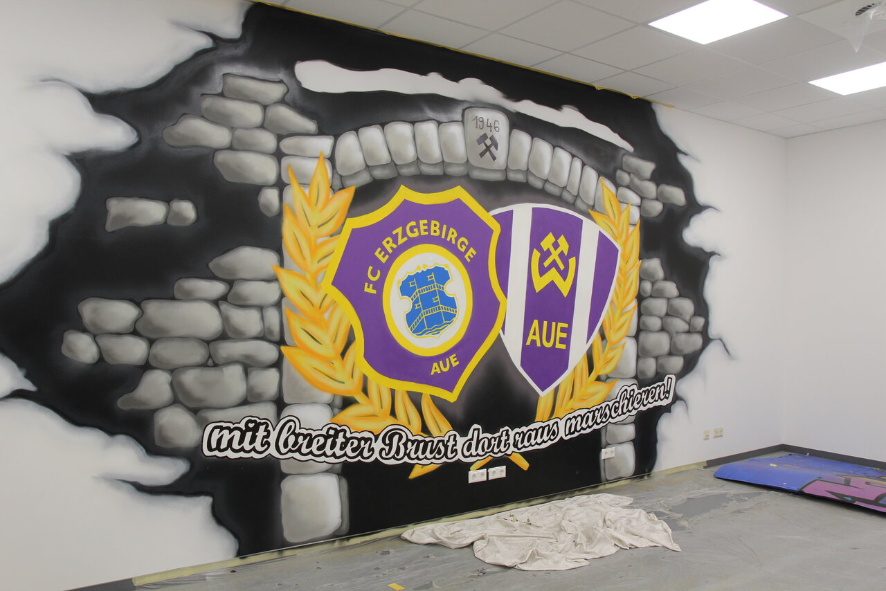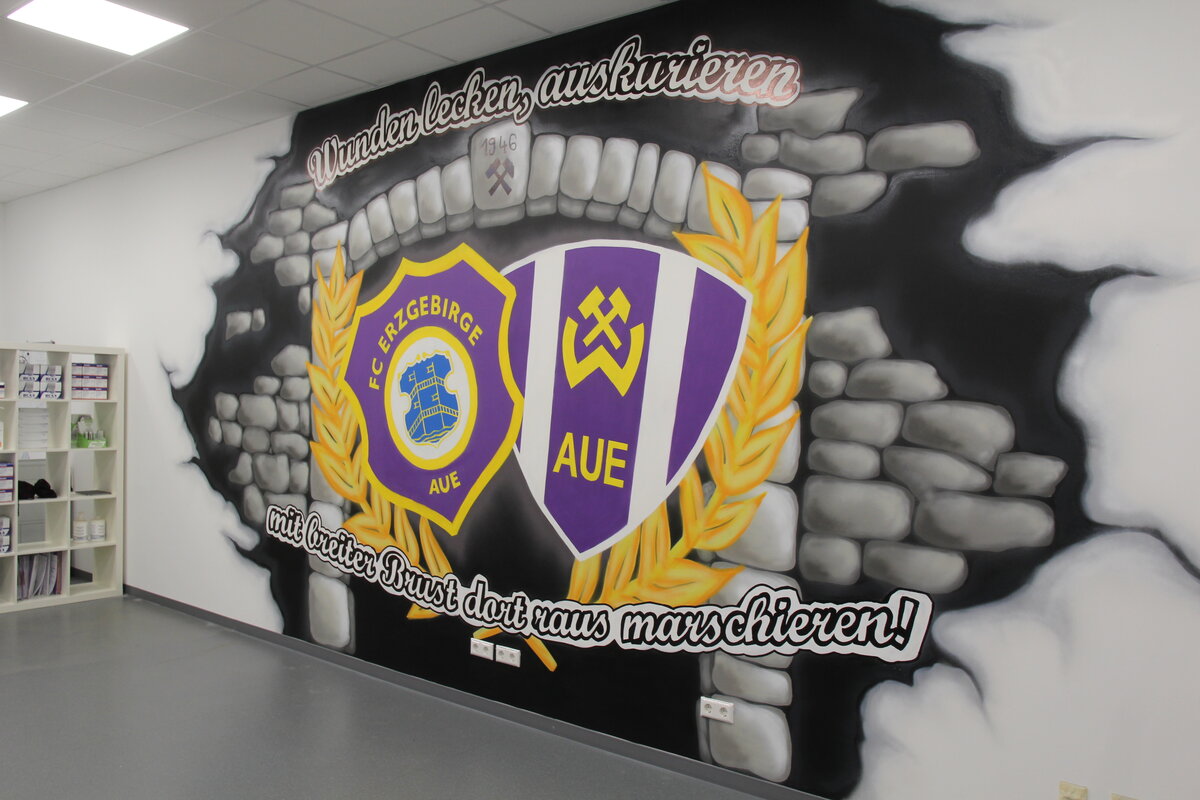 Während unsere 1. Mannschaft sich im Urlaub befand, waren Teile unserer aktiven Fanszene fleißig im Erzgebirgsstadion am Arbeiten. In 3 Wochen wurden nach Feierabend unser Physioraum und der lange Kabinengang mit eindrucksvollen Motiven gestaltet. Der Wunsch zu dieser Aktion kam direkt aus der Mannschaft.