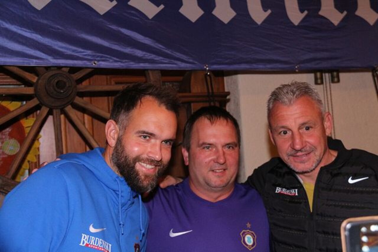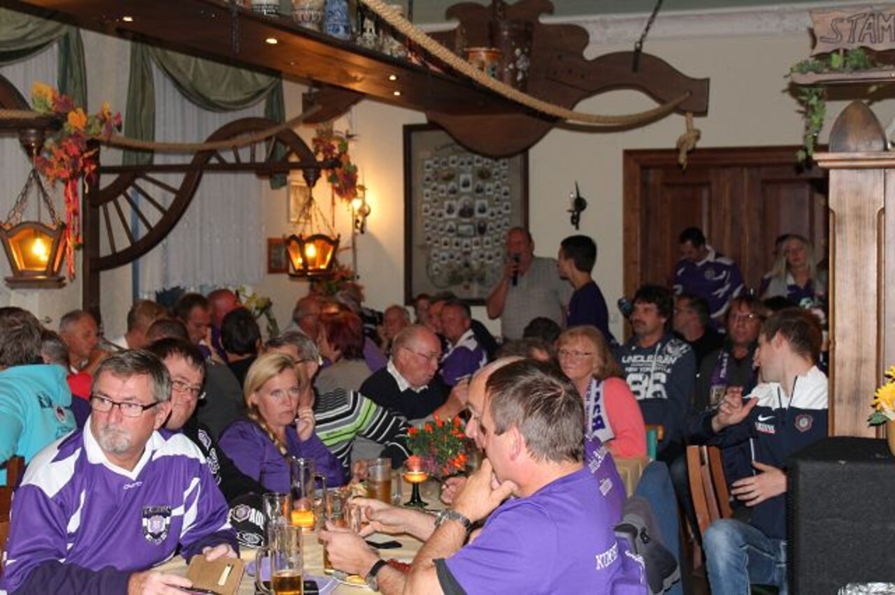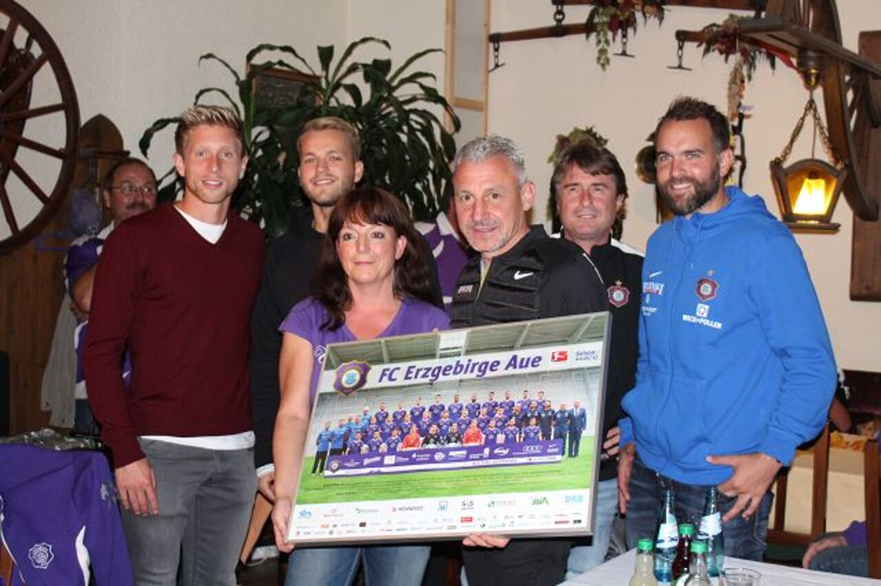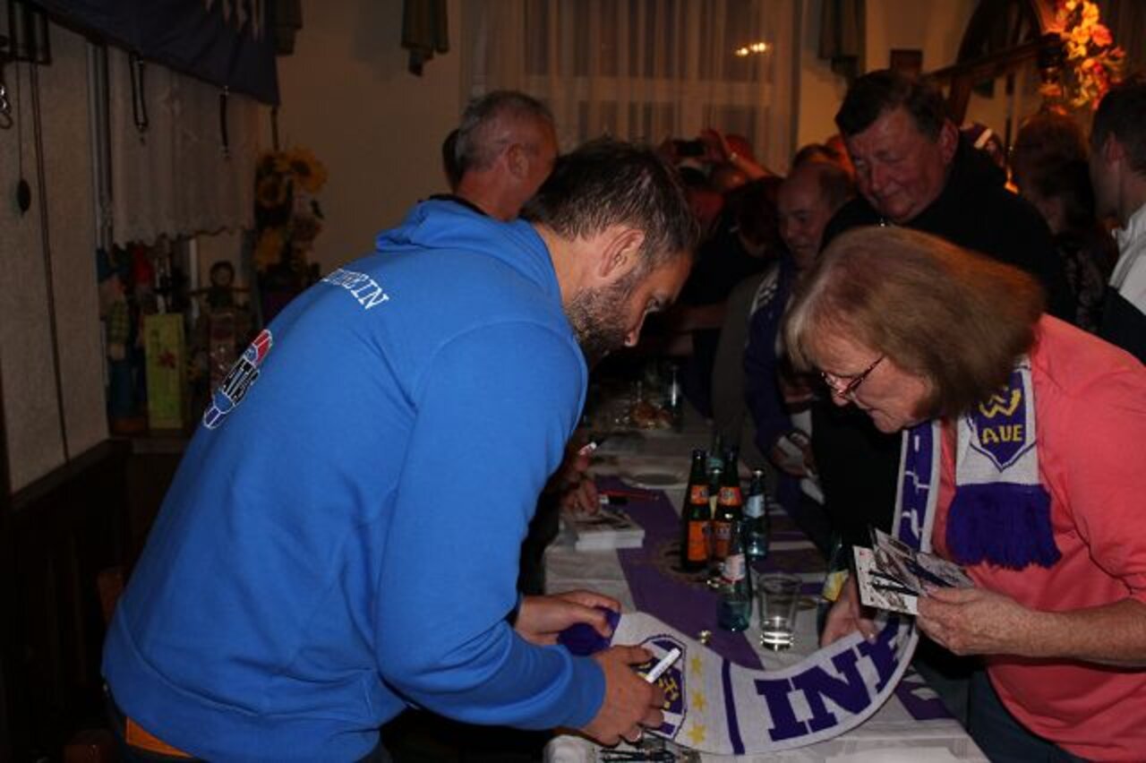 Im ‚Ritterhof‘ von Altmittweida fand gestern mit knapp 80 Veilchenfans der erste FCE-Fanstammtisch der neuen Saison statt. Die zahlreichen Fragen der Fans beantworteten unser Cheftrainer Pavel Dotchev, TW-Trainer Max Urwantschky, Pascal Köpke und Sebastian Hertner, welcher kurzfristig für den erkälteten Simon Skarlatidis seine Teilnahme zusagte. Knapp 90 Minuten löcherten die Fans unsere Gäste mit ihren Fragen. Bevor es die begehrten Autogramme und Erinnerungsfotos gab, hatte der Fanclub Altmittweida für jeden der Gäste noch eine kleine Überraschung parat. Im Anschluss überreichten die Jungs vom FCE noch ein aktuelles Mannschaftsposter und bedankten sich somit für die super organisierte Veranstaltung. Mit dem gemeinsamen Singen des Steigerliedes beendete man den offiziellen Teil.