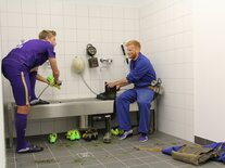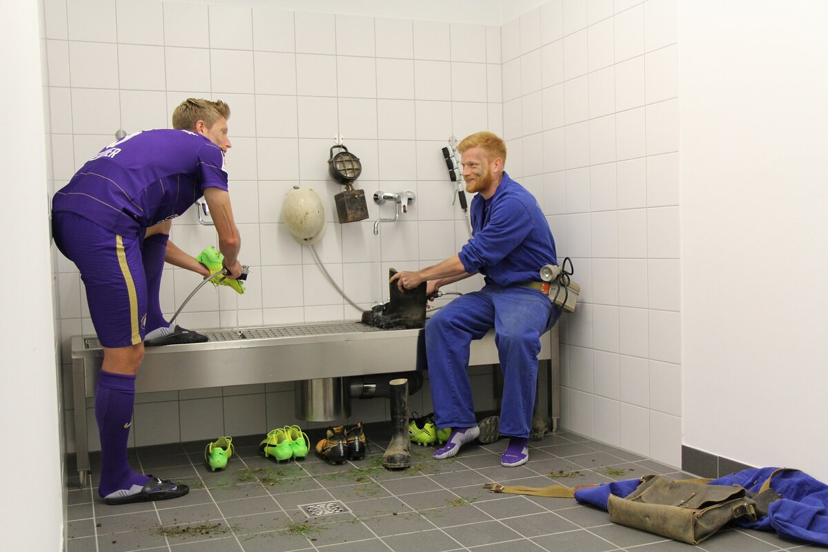 Vor dem Training am Mittwoch wurden unsere Spieler als Fotomodels gefordert. Der Veilchen-Fanshop hatte in Zusammenarbeit mit dem FotoAtelier-Lorenz verschiedene Motive in der neuen Haupttribüne ausgewählt und Aufnahmen für den neuen Jahreskalender 2018 aufgenommen. Das Trainerteam wurde zum Beispiel in der Mixzone abgelichtet, Calogero Rizzuto und Dennis Kempe saßen in der Kabine Model. Gegen 14 Uhr waren alle 12 Kalenderblätter im Kasten. Der Veilchen-Jahreskalender wird in Kürze im