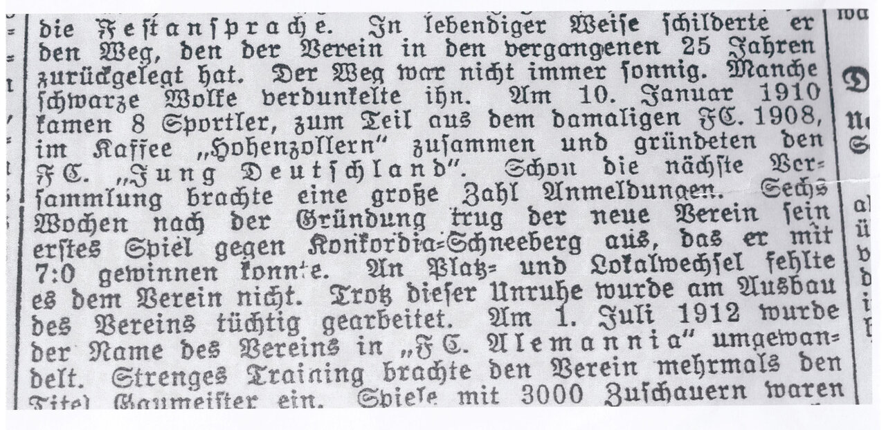 Aus „Jung Deutschland” wird Alemannia - zur Geschichte unseres Kumpelvereins – Teil 2
