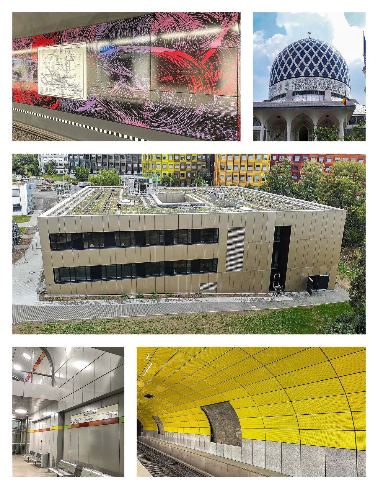 Ob die Hauptbahnhöfe in Hamburg und Stuttgart, Bank Station in London oder U-Bahnhof Sendlinger Tor in München, gigantische Trinkwassertanks auf Flächen so groß wie ein Fußballfeld, das neue Shoppingviertel von Saudi-Arabiens Hauptstadt Riad… – dies sind nur wenige der vielen aktuellen globalen Projekte von Omeras. Was die Lauterer bei aller Zukunftsbegeisterung gleichwohl nie vergessen ist die eigene Tradition. Die Firmenwurzeln reichen bis 1838 zurück und seit fast 150 Jahren wird am Standort Emaille-Geschichte geschrieben. Modern interpretiert, ist der Werkstoff aus Metall und Glas 2021 begehrter denn je, wie aktuelle Omeras-Referenzen belegen. Die Fotos zeigen Beispiele: U-Bahnstation Reeperbahn und Hauptbahnhof in Hamburg, ein Unternehmsneubau im hessischen Gießen, U-Bahnstation Sendlinger Tor sowie moderne Moschee in Malaysias Hauptstadt Kuala Lumpur.
