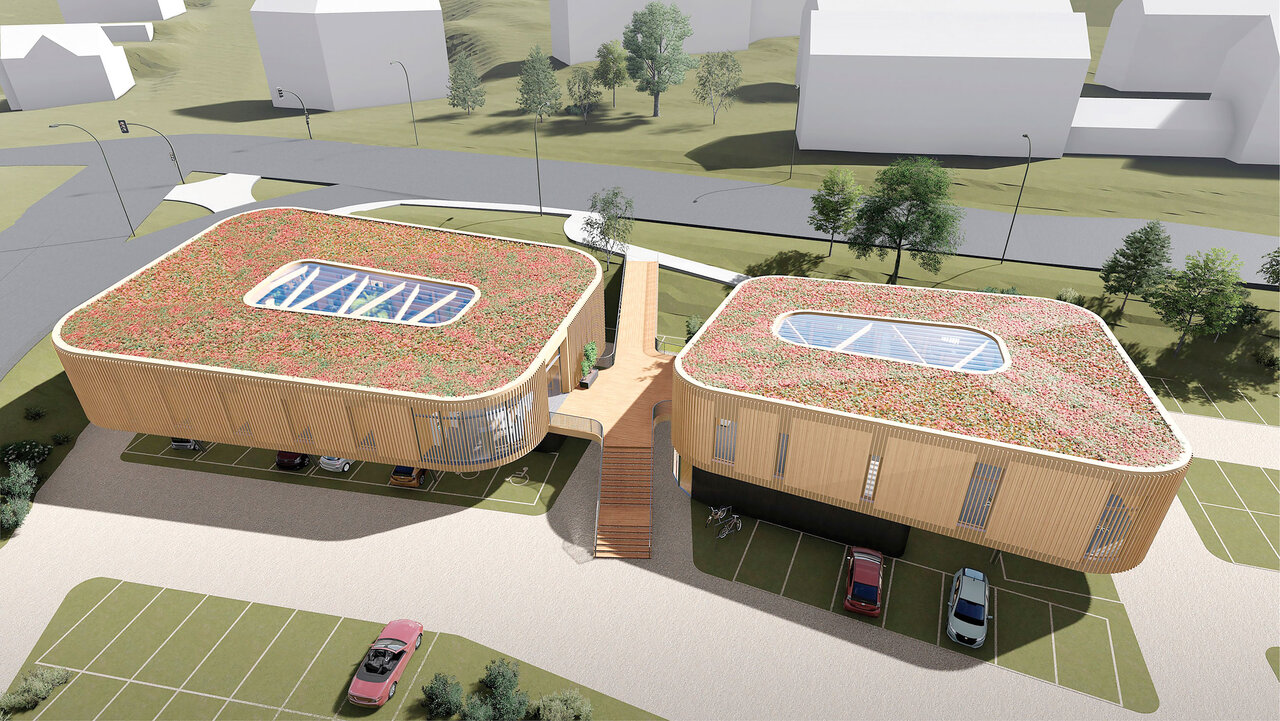 Bald soll die Vision Wirklichkeit sein: Auf dem Zeller Berg und in unmittelbarer Nachbarschaft des Erzgebirgsstadions entsteht im kommenden Jahr die neue Filiale der Volksbank Chemnitz eG. Bild: Volksbank Chemnitz eG