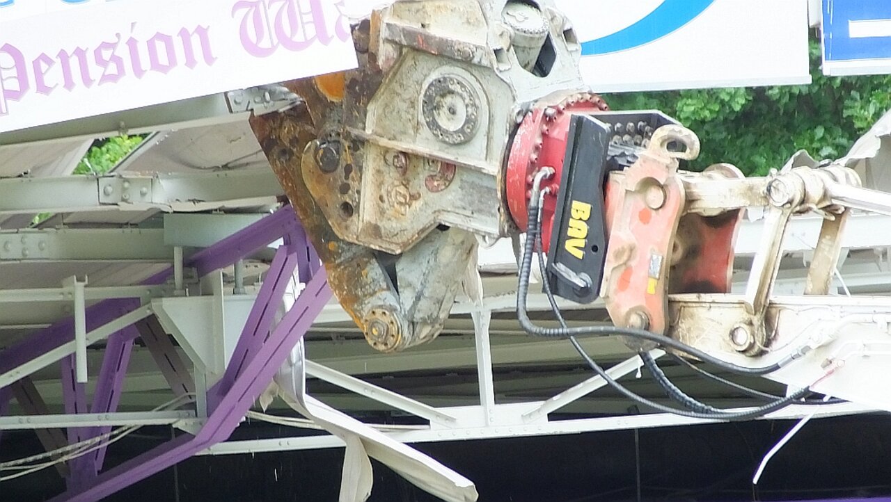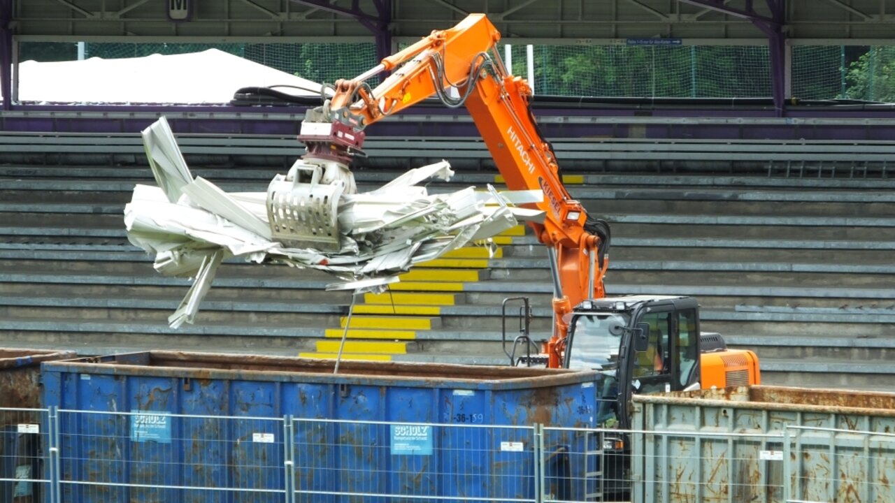 Mit dem heutigen Tag geht es nun auch dem Herzstück unserer alten Haupttribüne zu Leibe.... Wo einst die Mannschaften ihre Töppen schnürten, die Schiedsrichter sich vorbereiteten, die Polizei alles im Blick hatte, Rundfunkreporter 'Toooooor für die Veilchen' ins Mikrofon brüllten,
