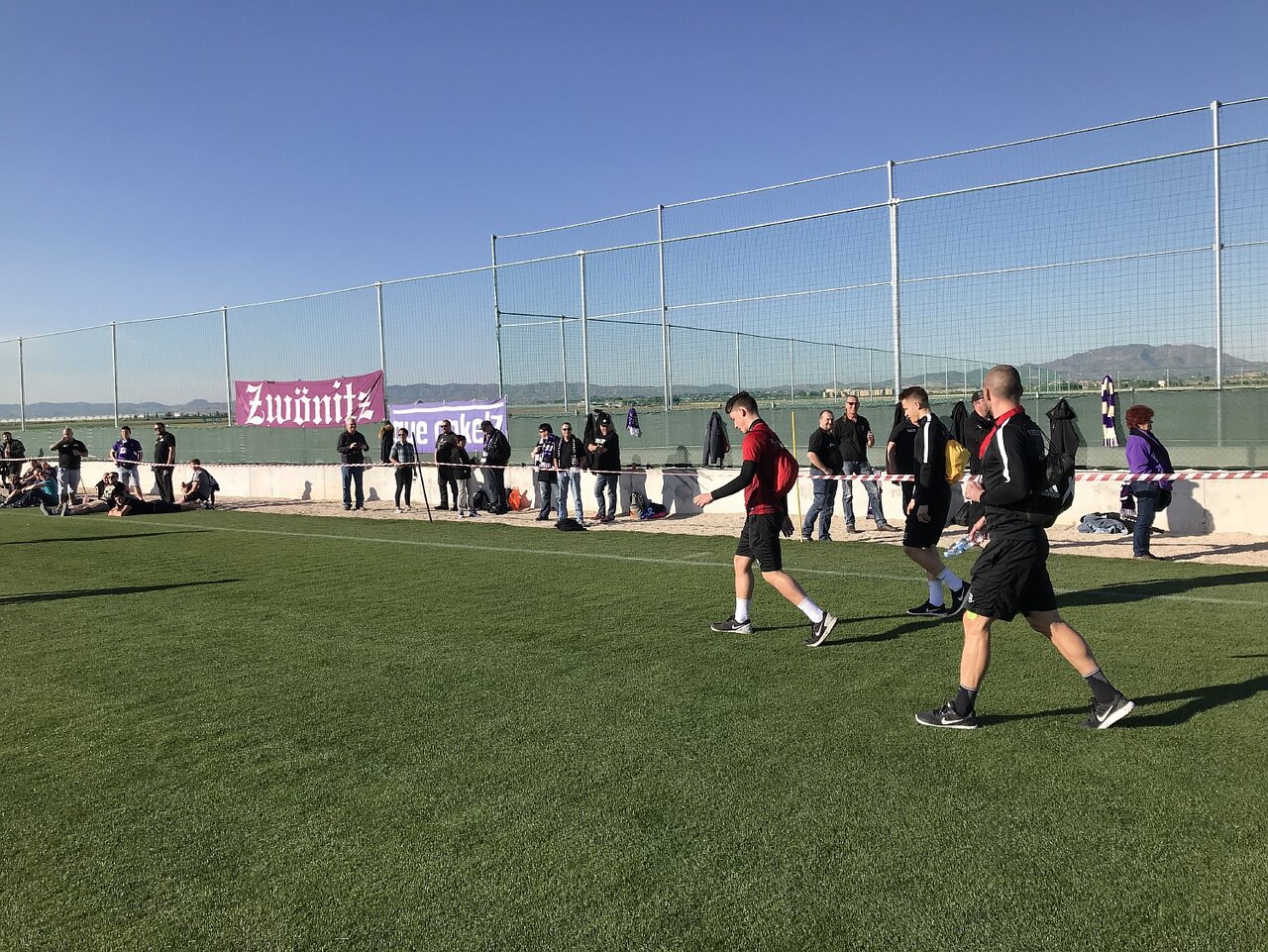 Danach ging es raus zum Trainingsplatz, vorbei an den mitgereisten Fans, die heute zum 1. Mal beim Training waren.