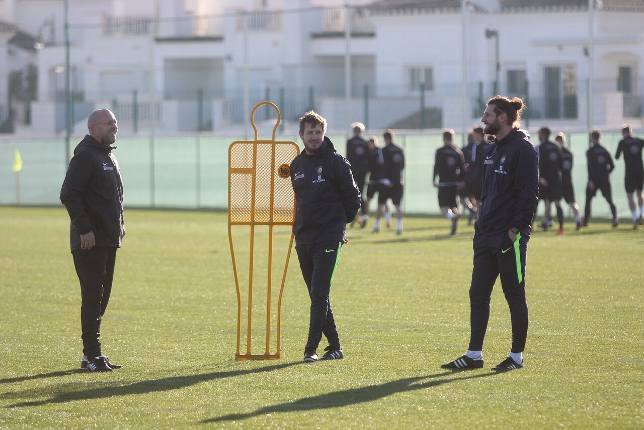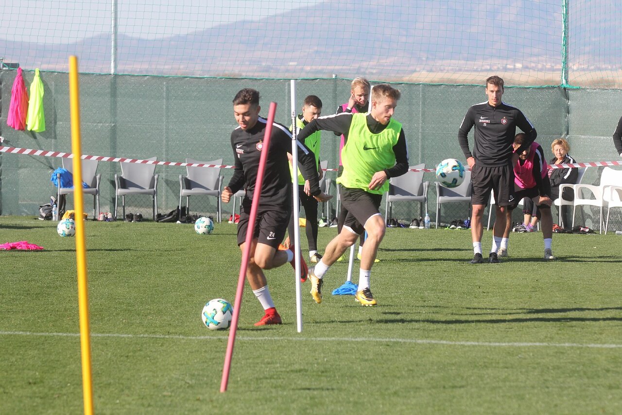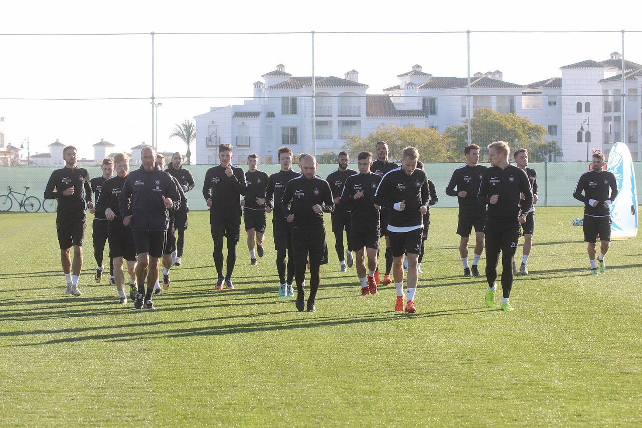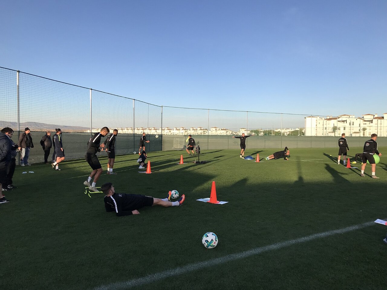 Dann ging es auch schon zum Trainingsplatz. Auf dem Nebenplatz trainiert bereits der KV Oostende unser nächster Testspielgegner