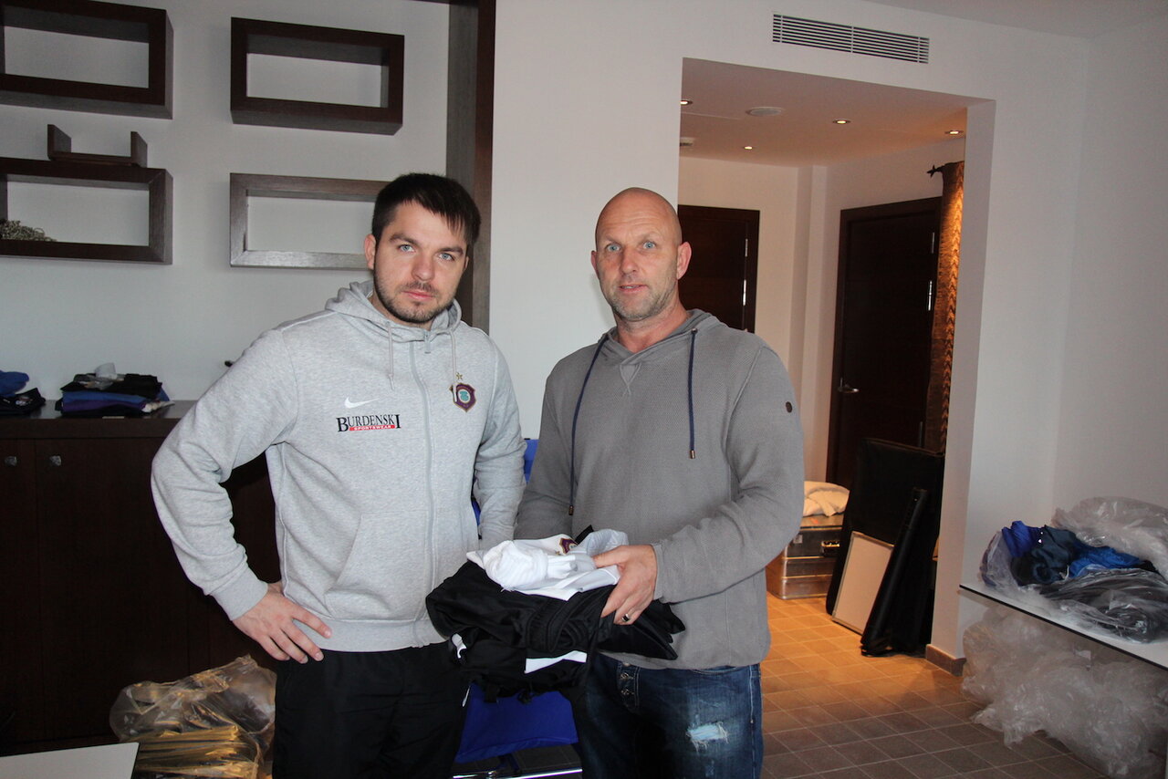 Heute Morgen begrüßten wir einen "Neuzugang" im VeilchenCamp. Mike Sadlo hospitiert im Rahmen seiner Fußballlehrerausbildung wieder im Trainerteam. Hier bekommt er gerade von Tommy Käßemodel seine Trainingssachen ausgehändigt.
