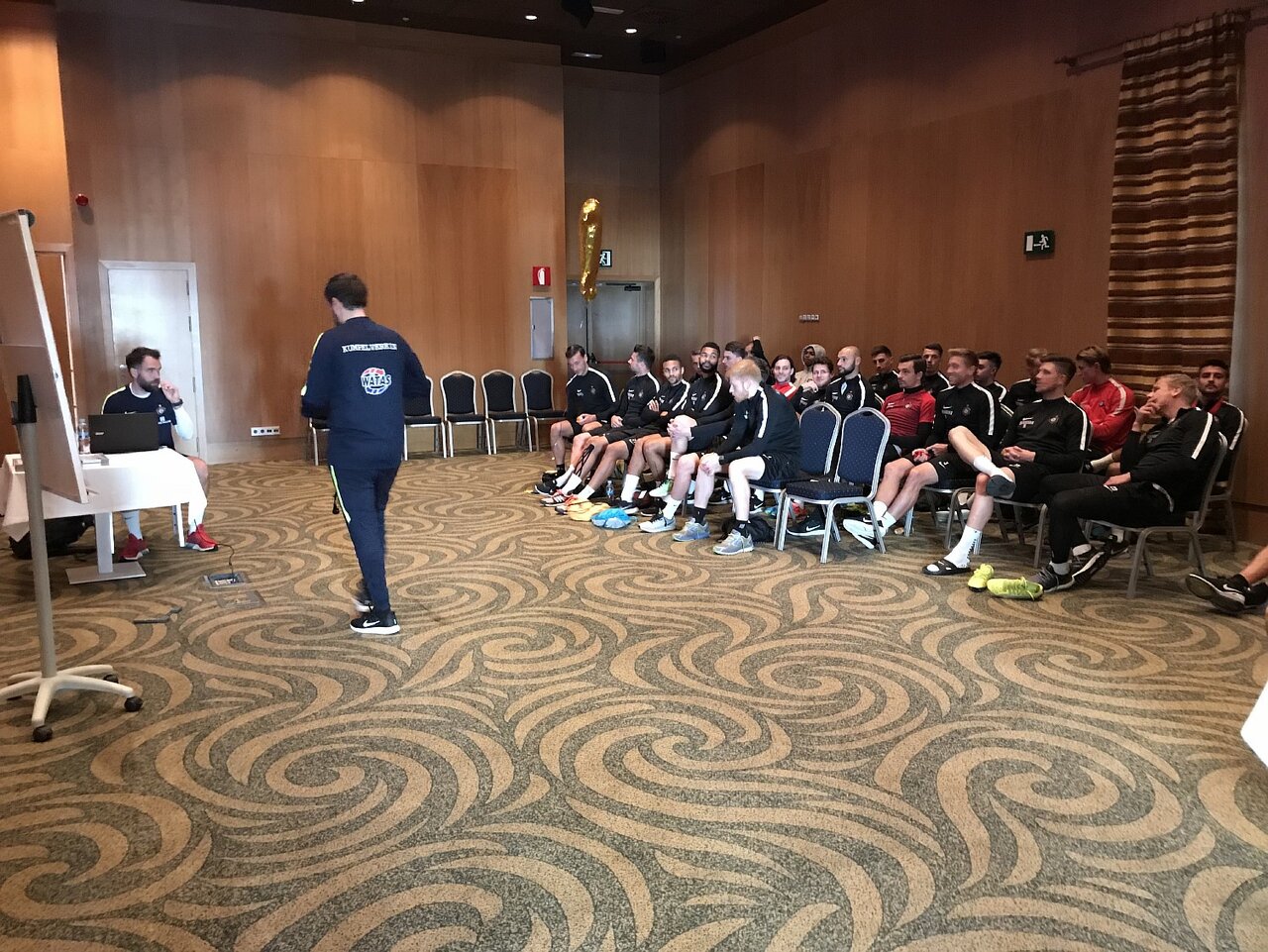 Die Nachmittagseinheit startete heute mit der Videoauswertung des Testspiels gegen Eintracht Frankfurt.