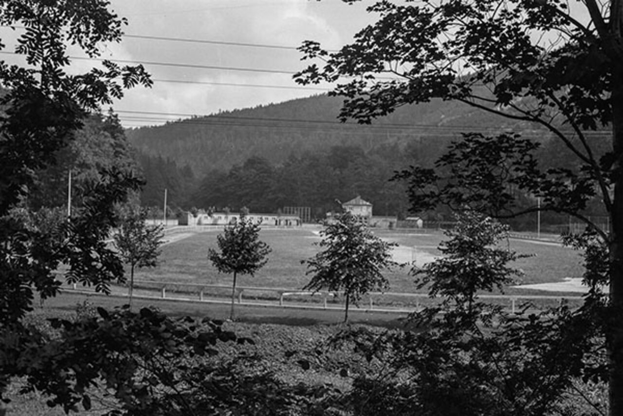 Die Ausführung der Platzanlage sei durch die Firma Metzner aus Schwarzenberg, die der Hochbauten durch den Auer Betrieb Lederer & Strobel sowie Christoph & Unmack aus Niesky erfolgt. Weiter seien beteiligt gewesen die Klempnermeister Barth und Kunzmann, Dachdeckermeister Kühnhold sowie die Maler Arndt und Oesterreich aus Aue. Sportausrüstungen habe die Sporthaus G.m.b.H, Filiale Aue, geliefert. Bauinspektor Schiffner oblag die örtliche Bauleitung, die Leitung der Holzbauten hatte Diplomingenieur Burkhard.
