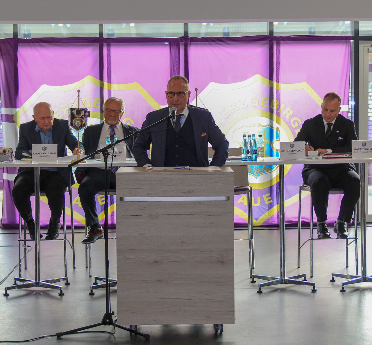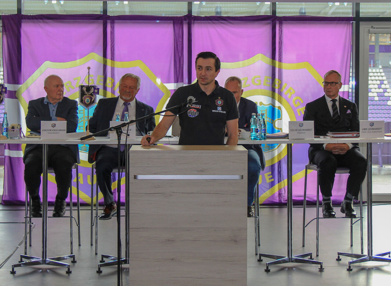416 FCE-Mitglieder (von aktuell 7.314) waren am 1. Dezember in die VIP-Zone des Erzgebirgsstadions gekommen, um die Zukunft ihres Vereins mitzubestimmen. Bereits beim Rechenschaftsbericht gab es Standing Ovations, zog Helge Leonhardt doch eine überaus positive Bilanz der letzten drei Jahre. „Diese Zeit war ein Quantensprung für unseren Verein, in der wir das neue Stadion errichtet und eine umfassende Infrastruktur geschaffen haben. Wir sind wirtschaftlich gesund und der Zusammenhalt funktioniert”, betonte der Präsident. Obwohl man über Jahre auf einer Großbaustelle spielen musste, seien der Wiederaufstieg und danach zweimal in Folge der Erhalt der 2. Bundesliga gelungen. Extra hob er das Nachwuchsleistungszentrum, das erstmals mit zwei Sternen des DFB ausgezeichnet wurde, und die Abteilung Ringen, die in der ersten Bundesliga kämpft, heraus. Leonhardt bekannte sich zum Mehrspartenverein mit insgesamt 14 Abteilungen. Neun von zehn Mitgliedern gehören zum Bereich Fußball. 1,4 Millionen Euro habe der FC Erzgebirge an Eigenmitteln investiert, darunter im Stadion, ins Fanhaus, in einen neuen Mannschaftsbus und Videotechnik. In naher Zukunft müsse man auch bei der Wall of Fans und dem Traditionszimmer vorankommen, mahnte der Redner an.