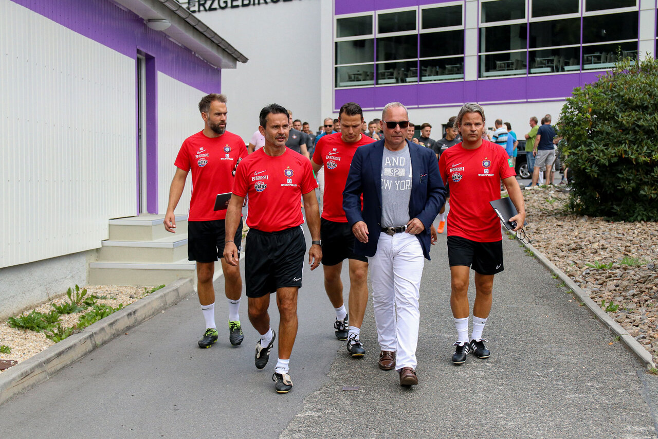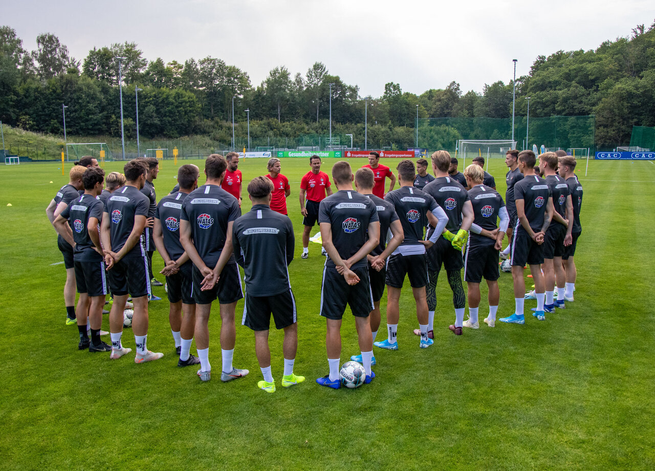 Unmittelbar nach der Pressekonferenz ging es für Dirk Schuster und Sascha Franz raus auf den Platz zur ersten Trainingseinheit mit den Veilchen. Am kommenden Sonntag dann das erste Punktspiel mit dem FC Erzgebirge, und zwar bei Holstein Kiel.