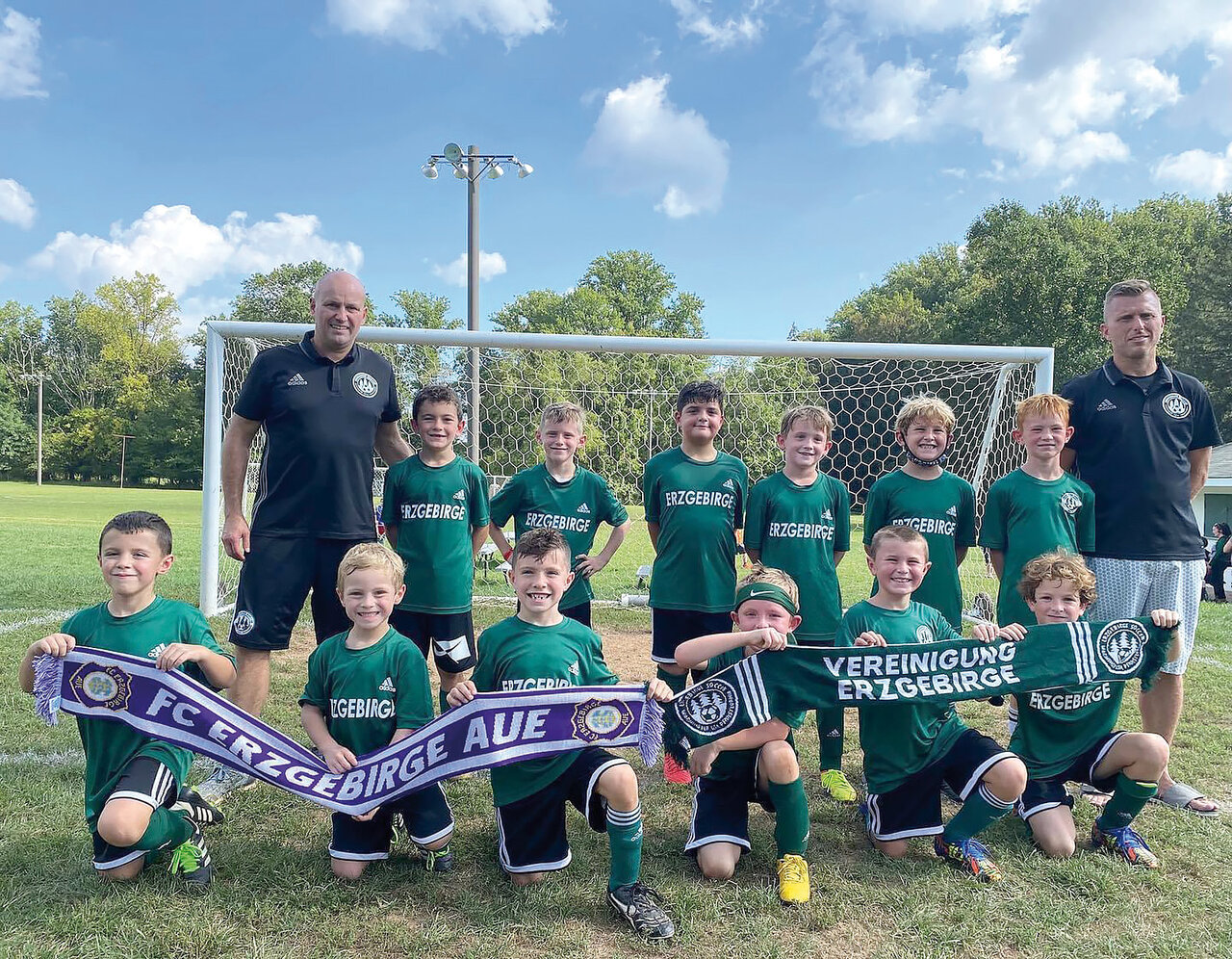 Erzgebirge Soccer, unter diesem Namen mischen Sportler aus der Kleinstadt Warminster die Jugendligen im US-Bundesstaat Pennsylvania erfolgreich auf. Sie gehören zur „Vereinigung Erzgebirge”, einem vor neunzig Jahren von Auswanderern aus Thalheim und dem Zwönitztal gegründeten Verein. Neben Kultur, Heimatgeschichte und anderem gehört Fußball, dortzulande Soccer genannt, zu seinen Sparten. Insgesamt rund 600 Kicker sind am Ball, betreut von 50 Trainern. Aktiv spielen vier Mannschaften bei den Senioren und 25 im Nachwuchs. Flaggschiff ist die erste Männerelf in der höchsten Amateurliga der Vereinigten Staaten, welche auch im nationalen Pokalwettbewerb immer wieder für Aufsehen sorgt. Der Cheftrainer übrigens betreut zugleich das Team der Jüngsten, das ab dieser Saison als „F. C. Erzgebirge Aue” aufläuft. Wie alle Soccers des Vereins tragen die Boys grün-weiße Dresse, typisch sächsisch eben. Wie im Wappen von Thalheim zieren drei Tannen das Logo. „Größter Wunsch der Talente wären freilich lila-weiße Trikots vom FC Erzgebirge”, weiß Jens Karluß aus Lößnitz, der den Kontakt zum amerikanischen Jugendtrainer Steven Feuchter pflegt und zur Jahreswende 2018/19 selber drüben zu Gast war. „Dabei habe ich einen Veilchenschal als Geschenk mitgenommen. In Warminster sind die Auer Veilchen sehr populär, gespannt verfolgen die Mitglieder der ,Vereinigung Erzgebirge’ das Geschehen in der 2. Bundesliga per Internet und in sozialen Medien. FCE-Geschäftsführer Michael Voigt ist offen für eine Partnerschaft. Bedauerlich, dass gegenseitige Besuche aufgrund der Coronalage noch nicht zustande kommen konnten”, meint Jens Karluß. Als Aktivist im Netzwerk Sachsen, das übrigens Premiumsponsor beim FC Erzgebirge Aue ist, hatte er vor Jahren eine Delegation aus Warminster durchs Erzgebirge begleitet.