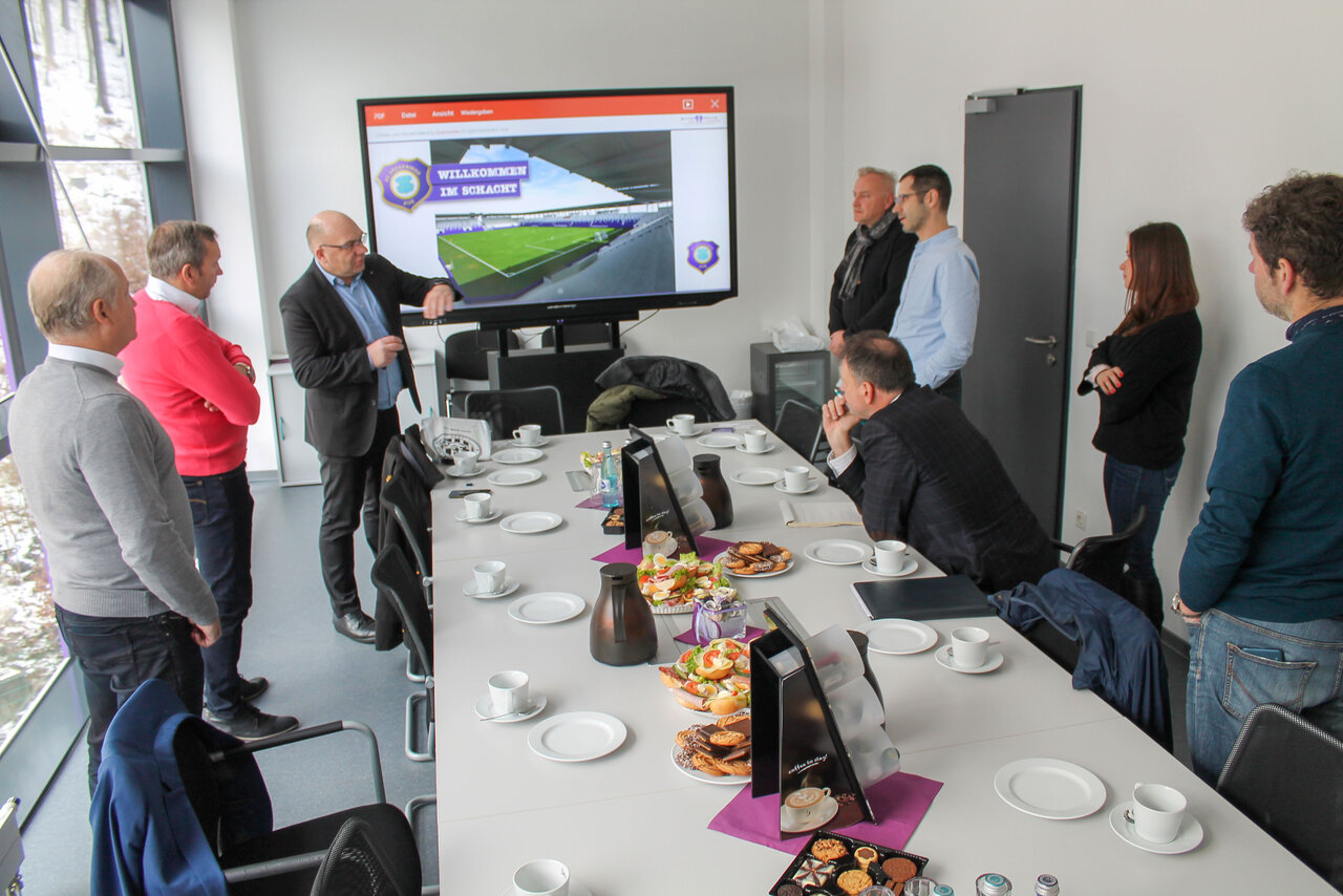 In der vereinbarten Zeit und im Kostenrahmen zuverlässig gebaut, funktional, fanfreundlich und schon optisch ein Schmuckkästen – das Erzgebirgsstadion findet nicht nur bundesweit Anerkennung. Und weckt das Interesse von Vereinen im In- und Ausland, die neu bauen möchten. Jüngstes Beispiel: der Besuch einer Delegation aus der ostböhmischen Großstadt Hradec Králové am 5. Februar in Aue. Dort plant der ambitionierte tschechische Zweitligist den Neubau des Fußballstadions an traditionsreicher Stelle. Dazu haben sich Stadt und Verein zusammengetan, denn die bisherige Arena aus den 1960er-Jahren genügt nicht mehr den Ansprüchen und Auflagen. Im Erzgebirgsstadion erläuterten FCE-Finanzvorstand Michael Voigt sowie Ronny Erfurt, Geschäftsführer der Phase 10 Ingenieur- und Planungsgesellschaft mbH Freiberg, den erfolgreichen Auer Weg zum modernen Bundesligastadion. Wie die täglichen Abläufe gemeistert werden beschrieb Alexander Sesser vom Stradionteam. Bei einem Rundgang erlebten Hradec Královés Vizebürgermeister Jiri Blaha und eine Expertengruppe aus dem Rathaus, Bauspezialisten sowie Vorstände des tschechischen Fußballklubs alle Bereiche des Erzgebirgsstadions. (OS)