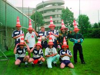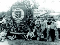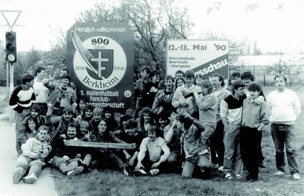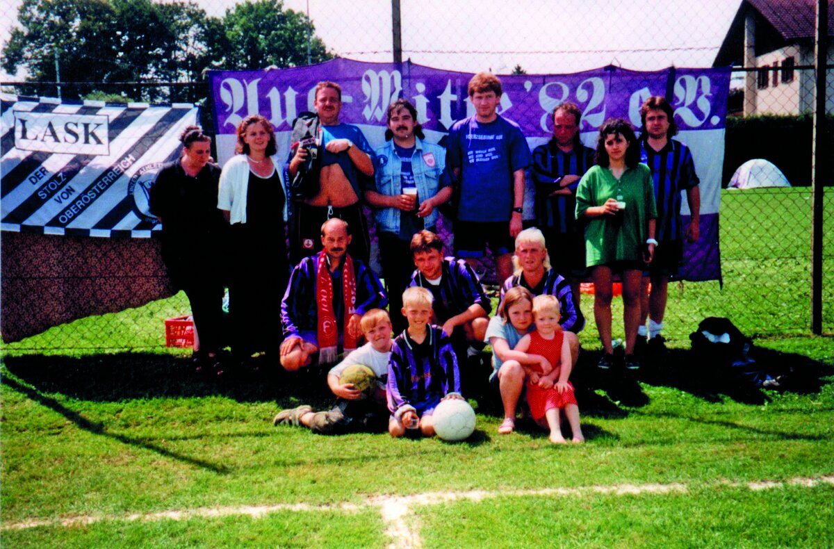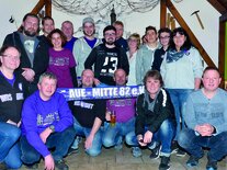 Im wilden Herbst ’89 brannte der „Finanzer” mit der Kasse über Ungarn in den Westen durch und mancher musste in jener Zeit das Erzgebirge auf der Suche nach Arbeit verlassen. Dennoch überlebte der Fanclub und nahm seit den Neunzigern an Turnieren im In- und Ausland teil. Los ging es zu Ostern 1990 mit der Hallen-Fanclub-EM im süddeutschen Berkheim, es folgten Gastspiele unter anderem in Berlin, Pegnitz, Kaiserslautern, Karlsruhe, Wattenscheid, Backnang, Düsseldorf, Zürich und Linz. Siebenmal lud man zwischen 1992 und 2002 zum eigenen internationalen Pfingstturnier auf den Zeller Berg ein, wo neben Wismut-Fanteams auch Hobbykicker von Bundesligisten, aus Liverpool, Österreich und aus der Schweiz aufliefen. Gebührend gefeiert wurden nicht nur runde Geburtstage wie der 25. (mit Tomasz Kos im Breitenbrunner „Bauernstübel”) oder der 30. im Markus-Semmler-Stolln in Bad Schlema, sondern auch sportliche Hits wie die Aufstiege des FCE in die 2. Bundesliga 2003, 2010 und 2016. Besonders stolz sind die „82er”, dass es in 35 Jahren wohl kein Heim- oder Auswärts- Punktspiel gab, wo nicht mindestens ein Mitglied von „Aue-Mitte” Flagge gezeigt hat. Das soll auch künftig so bleiben! (OS)