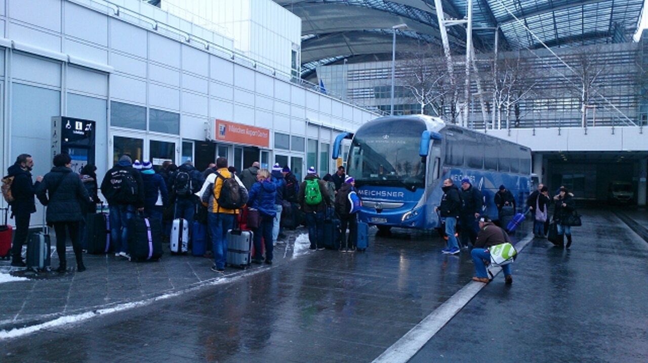 Start für unsere diesjährige Reise ins Trainingslager war bereits um 2:10 Uhr in Schönheide im tief verschneiten Erzgebirge und nach den den Zustiegen in Zschorlau, Aue, Lößnitz und Stollberg ging es für 50 Veilchenfans auf die stark verschneite "Piste" die Autobahn.