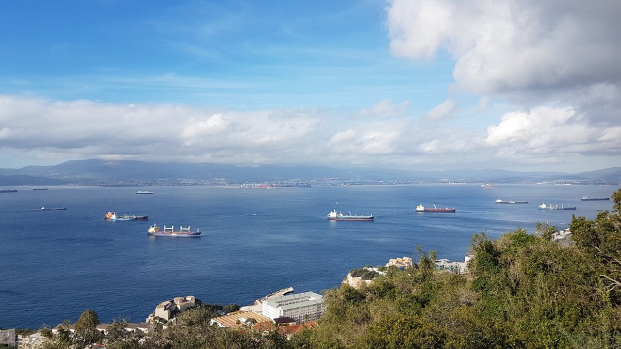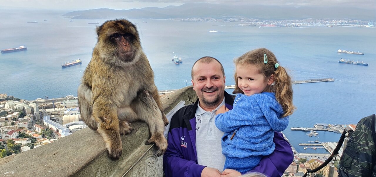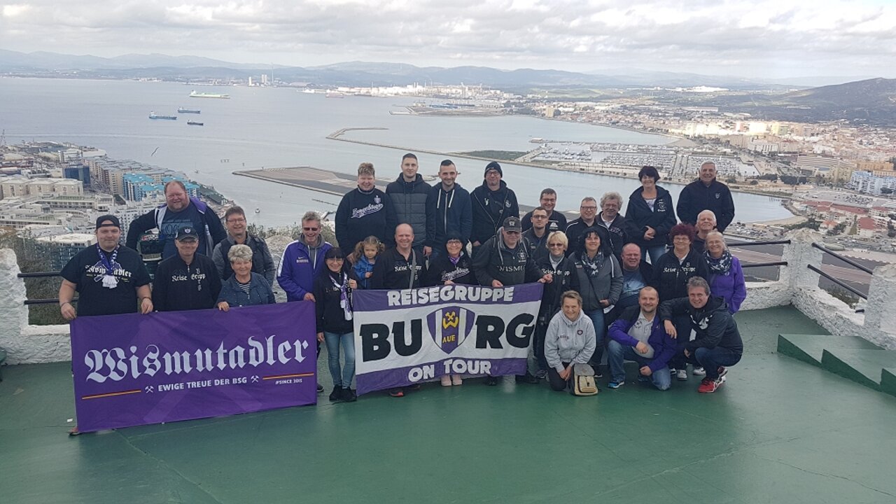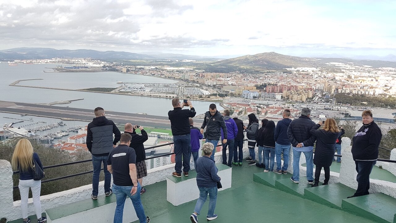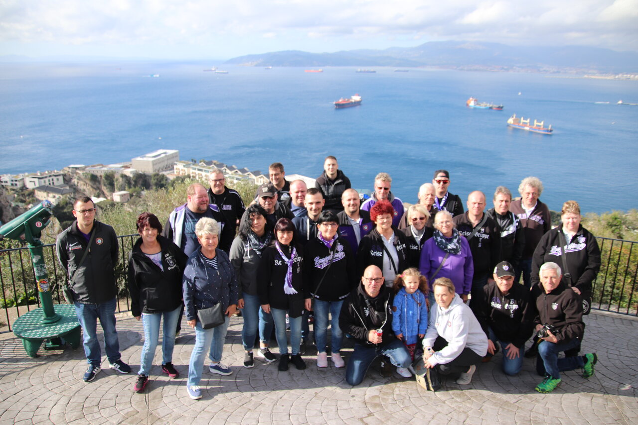Gemeinsames Gruppenfoto mit Blick auf Gibraltar.