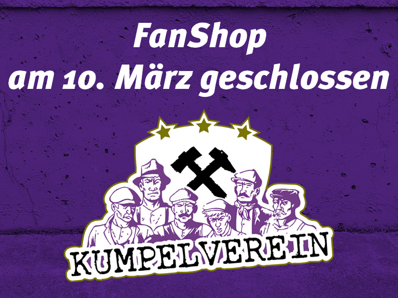 Unser neuer FanShop hinter der Haupttribünbe bleibt diesen Samstag (10. März 2018) geschlossen. Grund ist die Versiegelung des Fußbodens. Ab Montag ist der FanShop zu den gewohnten Zeiten wieder geöffnet.
