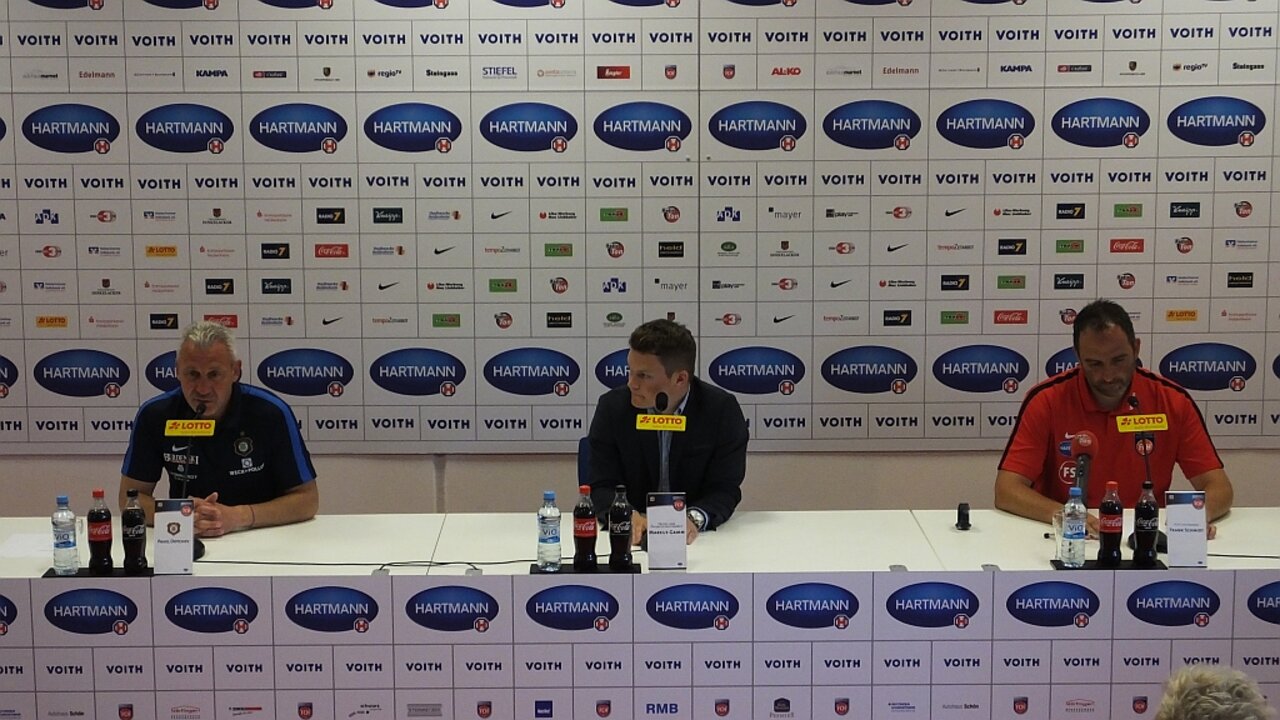 Die Cheftrainer beider Mannschaften auf der PressekonferenzPAVEL DOTCHEVFRANK SCHMIDT