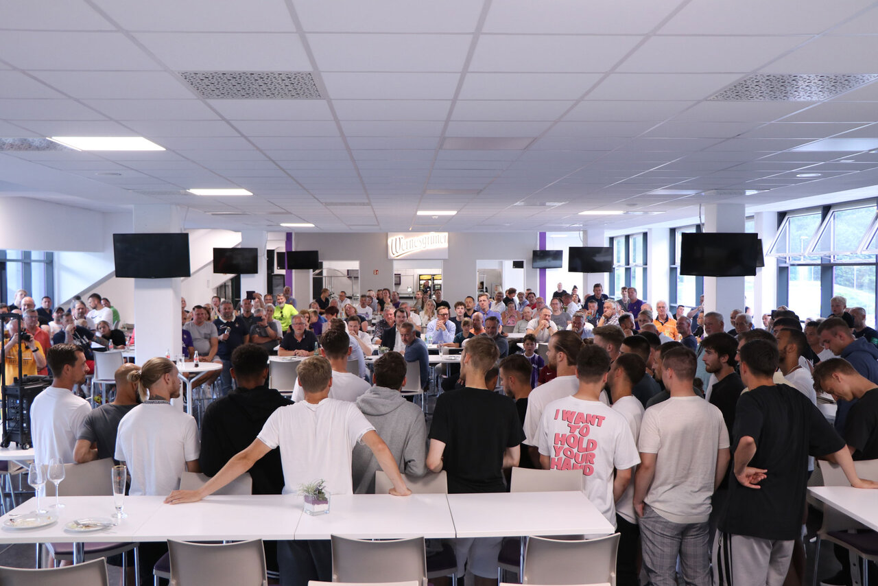 Ein weiterer Höhepunkt des Förderkreistreffens war die Vorstellung des neuen Veilchen-Kaders. Chefcoach Timo Rost stellte sein Trainerteam, die Spieler und sich selber vor. In den anschließenden Gesprächen tankten Sponsoren und Sportler Mut für die neue Saison. Einig sind sich alle, den Neubeginn in der 3. Liga erfolgreich zu gestalten. Mit einem leckeren Grillbuffet unterstützten FCE-Mitarbeiter und -Caterer den Abend, der bei allen Teilnehmern Aufbruchstimmung weckte. Denn nur gemeinsam sind wir stark!