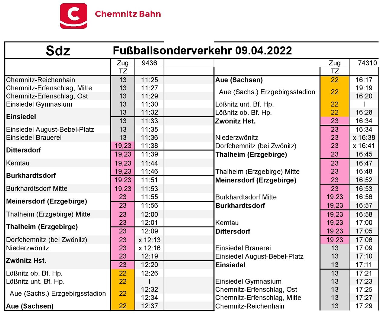 - Gästefans mit Zuganreise können ab Bhf. Aue bei Bedarf einen Bus-Shuttle nutzen