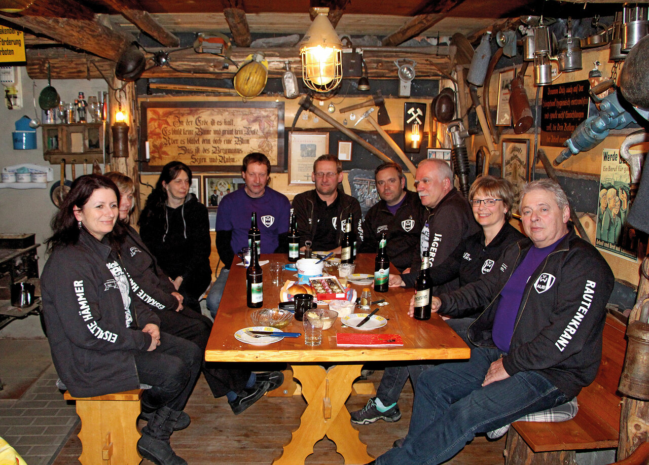 Die „Eiskalten Hämmer” 2017 bei ihrer Ausfahrt zur Burg Loket in Böhmen und beim Feiern in Konrad Stahls Gezähekammer