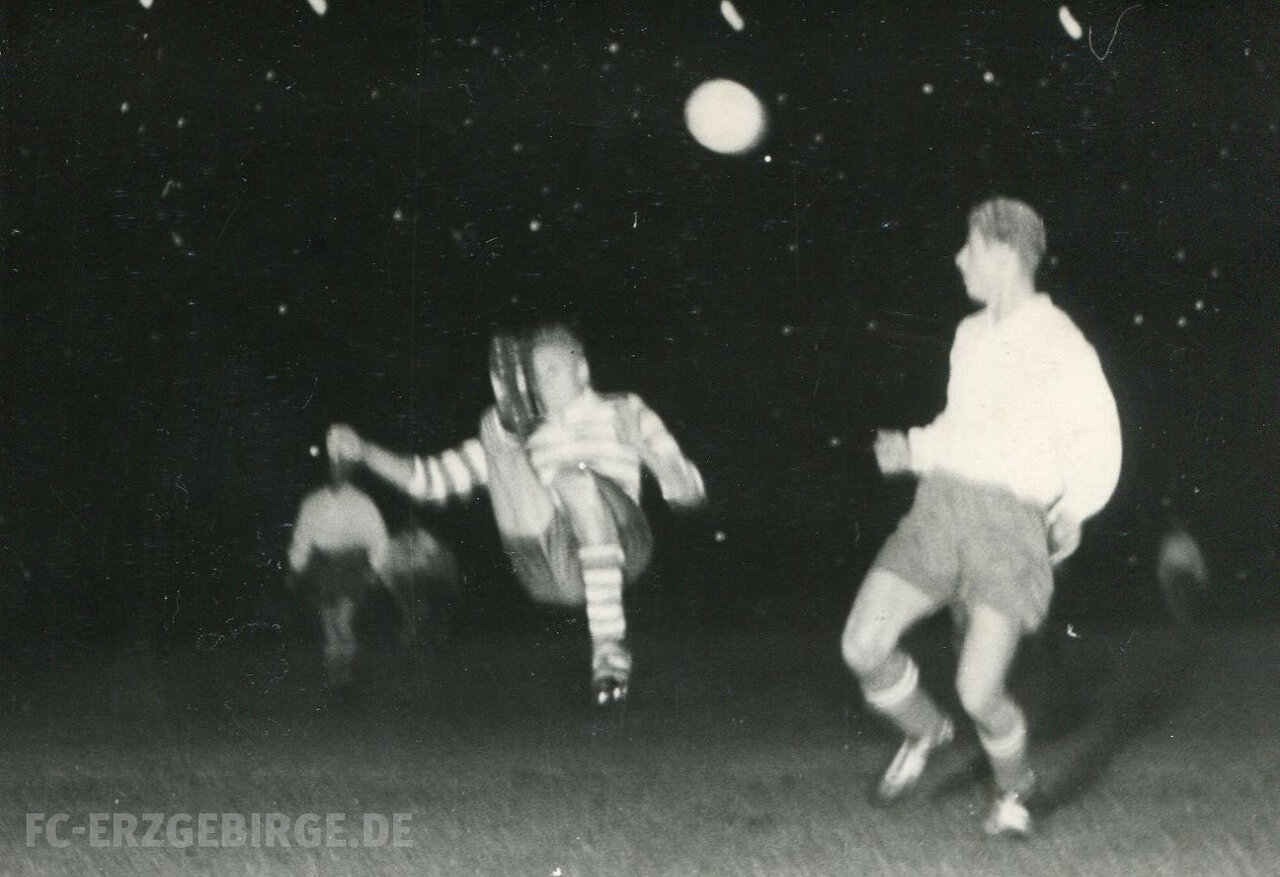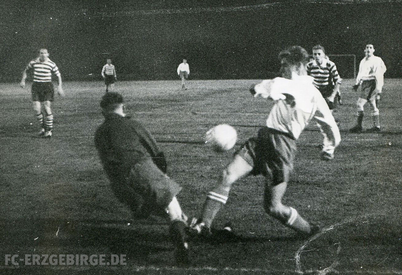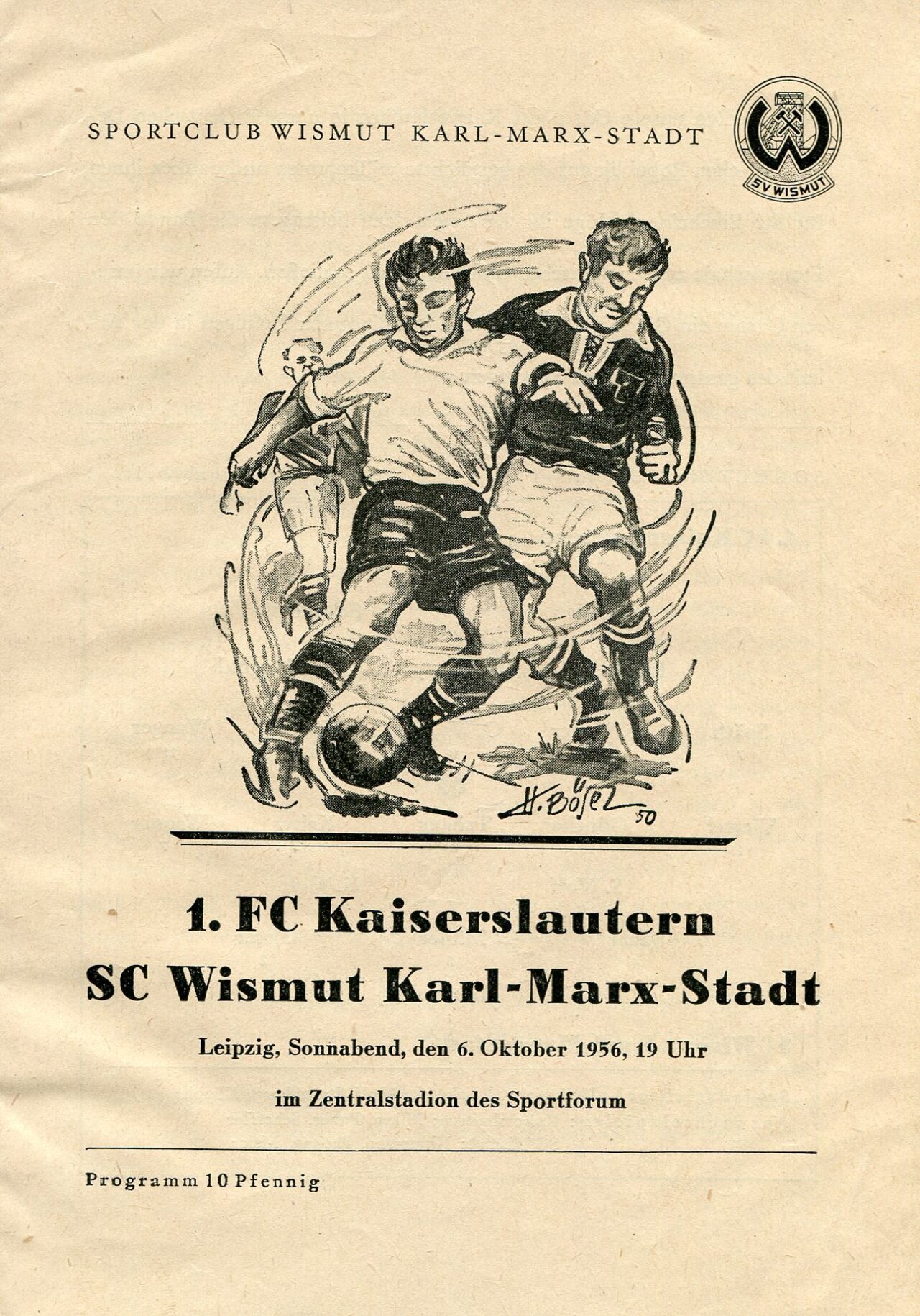 Leipzigs Fußballfreunde durften sich glücklich schätzen, nach der Flutlichtpremiere zwischen Honved Budapest und dem SC Wismut nun wieder einer Fußballveranstaltung von überragenden Niveau beigewohnt zu haben. Diesmal hießen die Spielpartner 1. FC Kaiserslautern und SC Wismut Karl-Marx-Stadt – zwei Mannschaften, die seit längerer oder kürzerer Zeit im deutschen Fußball Namen und Ansehen genießen.