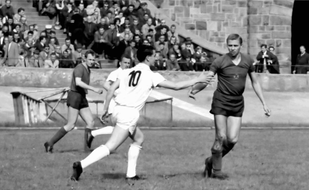 Damals nannte er seine Erfolge mit Wismut die wichtigsten der Spielerlaufbahn: drei DDR-Meistertitel, Erster der Übergangsrunde, FDGB-Pokalsieg 1955, dazu die Europacupkrimis gegen Göteborg, Ajax Amsterdam, Gwardia Warschau, Young Boys Bern, Rapid Wien… Absolute Höhepunkte seien die beiden Duelle West gegen Ost gewesen, zwischen dem 1. FC Kaiserslautern und dem SC Wismut 1956 und 1957. „Von den Begegnungen der Spieler, ob im Bad Dürkheimer ,Fass’ oder im Leipziger ,Astoria’, schwärmten alle, die dabei waren”, erinnerte sich „Binges”, der fortan auch Lautern-Fan war. Wie er zu seinem Spitznamen kam, verriet er dem Stadionheft damals auch: „Wie mein Bruder erzählte, hatten meine Eltern mal einen Streit und danach sei ich entstanden, das ,Verständigungsprodukt Bring-Fried’. Bloß sprich so ein sperriges Wort als Vierjähriger mal aus! Was da aus meinem Kindermund kam, klang wie ,Binges’”. In der Wismut- Mannschaft habe man den einsachtzig großen Abwehrmann hingegen „Langer” gerufen. Dass er dem „Tröger-Will” als junger Spund die Schuhe zuband, bestätigte er: „Willy hatte im Krieg eine Hand verloren und das Binden machte ihm Mühe. Da wir in der Nationalauswahl meist in einem Zimmer wohnten, ergab sich das. ,Langer, bind mir einen ein!’ rief der Willy dann.”