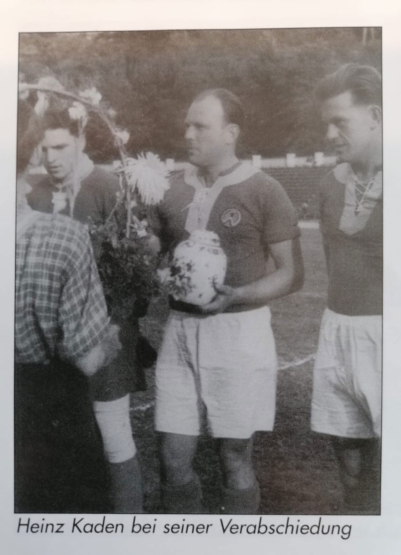 Heinz Kaden wurde am 22. August 1920 geboren. Er war von 1948 bis 1950 Kapitän der Auer Mannschaft. Kaden absolvierte vom August 1951 bis November 1952 30 Oberligaspiele und erzielte dabei 3 Tore. (Quelle: dfb.de)