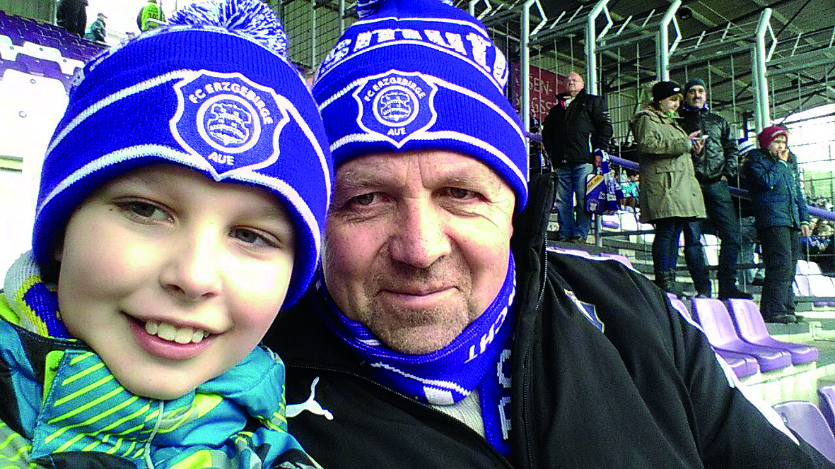 Opa Andreas und Enkel Leon drücken den Lila-Weißen regelmäßig im Erzgebirgsstadion die Daumen.