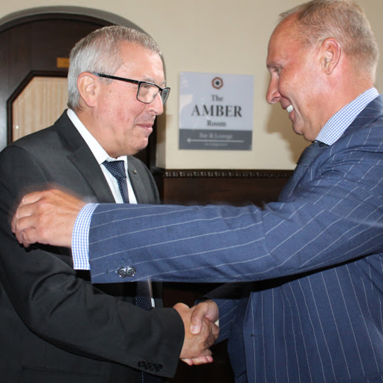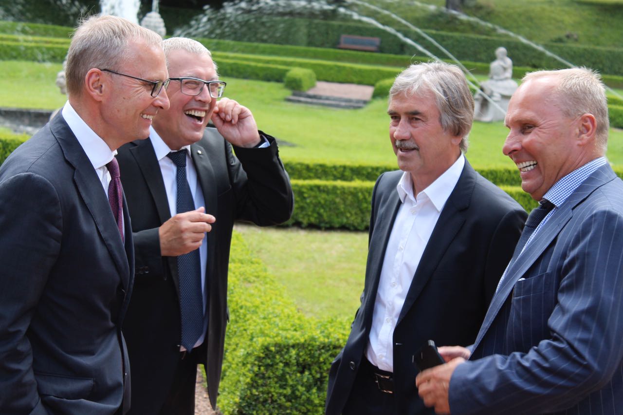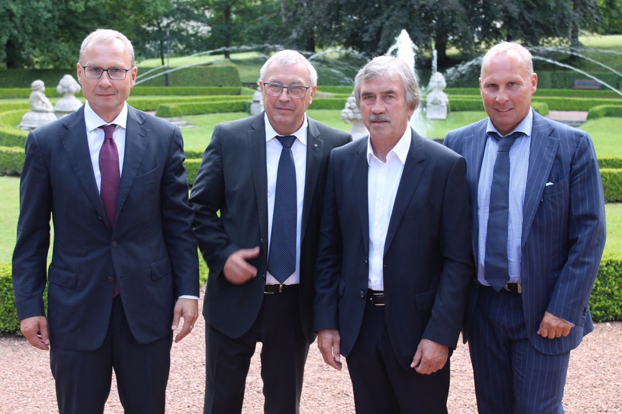 Unser langjähriger FCE-Vizepräsident und späterer Aufsichtsrat Bertram Höfer hatte heute Vertreter aus Politik, Wirtschaft und Sport ins Gästehaus Wolfsbrunn eingeladen. Der Grund dafür war seine feierliche Verabschiedung als langjähriger Hauptgeschäftsführer und zugleich Mitbegründer des vti (Verband der Nordostdeutschen Textil- und Bekleidungsindustrie). Newsfoto: Präsident Helge Leonhardt und Aue-Urgestein Holger Erler mit Betram Höfer. Und hier dankt ihm Präsident Helge Leonhardt.