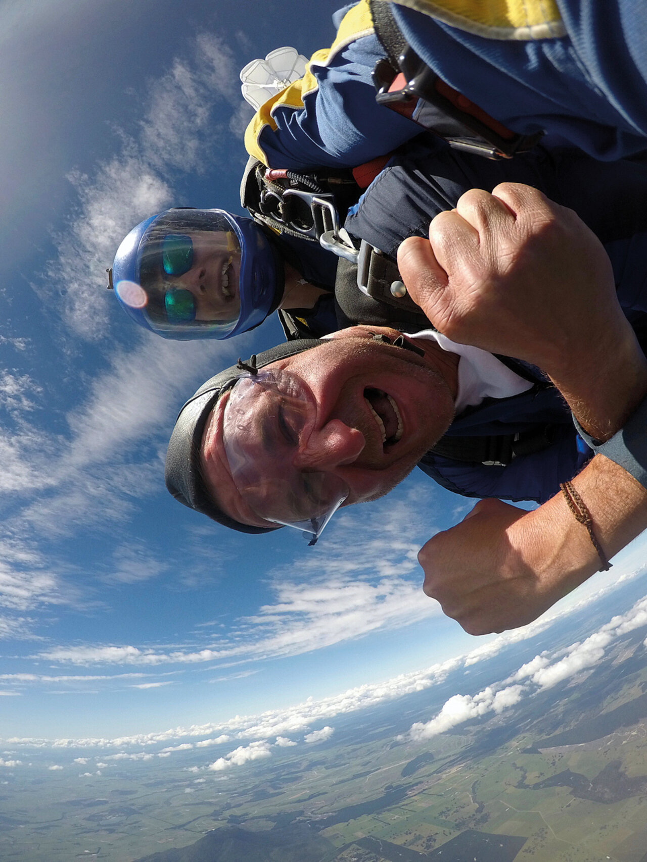 Spektakuläre Urlaubsbilder senden Steffen von der Nordsee und Jan aus „Zwäntz”: „Wir haben uns in Neuseeland zwei Träume erfüllt. Erst wagten wir uns per Bungee-Jump von der Kawarau Bridge, sprangen dann aus 5.000 Metern mit Fallschirmen aus dem Flugzeug. Natürlich mit den ,Hämmern’ und dem Aueeeee-Schrei auf den Lippen! Die Schals durften wir im Flieger nicht ran machen und die Trikots kann man auch nicht sehen, weil wir blöde Anzüge drüberziehen mussten. Die gabs leider nicht in Lila-Weiß.”