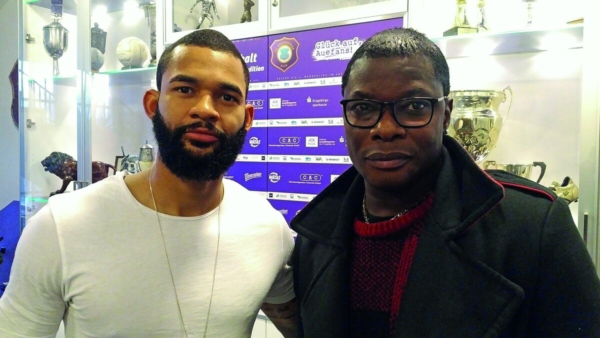 „Aue war meine erste und liebste Fußballstation in Deutschland”, meint der heute 46-jährige Ex-Profi, der zwischen 1993 und 1997 als Innenverteidiger 121 Punktspiele für die Veilchen bestritt und dabei zwei Tore erzielte. In der letzten Novemberwoche schaute Moudachirou Amadou wieder mal im Erzgebirge vorbei und freute sich, in der FCE-Geschäftsstelle bekannte Gesichter zu sehen. Afrikanisch-herzlich fiel das Wiedersehen aus mit Bernd „Zimbo” Zimmermann, Peter Höhne, Petra Ullmann und Gabi Klein. In Lößnitz, wo er vor zwei Jahrzehnten wohnte, besuchte er bei der Gelegenheit Freunde. Doch vor allem kam er ins Erzgebirge, um seinen Sohn Amiro zu begleiten, der Fünfzehnjährige spielt aktuell in der U 16 des VfB Stuttgart und kann sich – ganz im Sinne seines Papas – vorstellen, künftig beim FC Erzgebirge weiterzumachen.