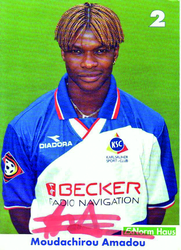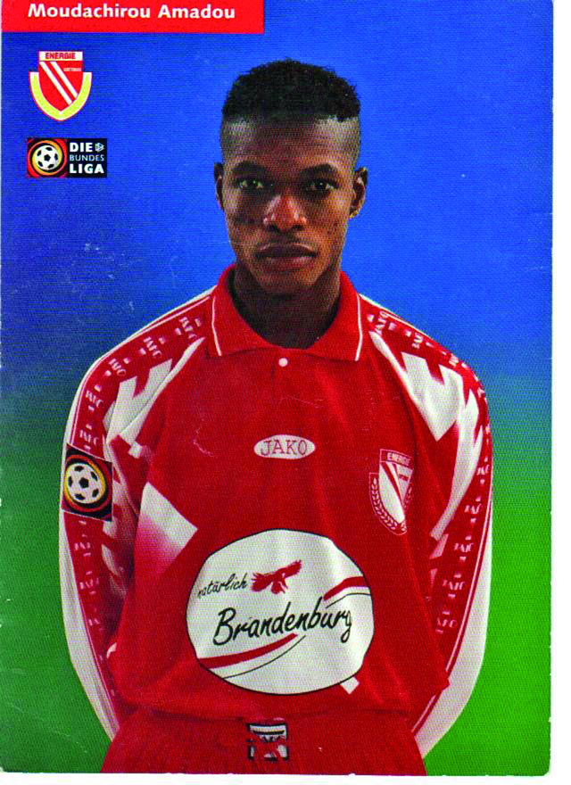 Von da wechselte der inzwischen 26-jährige Innenverteidiger zum FC Energie Cottbus. Hier, in der Lausitz, lernte er seine Daniela kennen, mit ihr und den beiden Jungs Charaf (19) und Amiro (15) lebt er heute in Stuttgart. In Cottbus spielte er ebenso wie danach beim Karlsruher SC (unter Trainer „Jogi” Löw) und Hannover 96 in der 2. Bundesliga. 2001 zeigte Bundesligaaufsteiger FC St. Pauli Interesse und Erstligaeinsätzen für die Kiezkicker. Nach dem Abstieg in die 2. Liga und wegen hartnäckiger Verletzungen wurde er kaum noch berücksichtigt. Nach einer schweren Knieverletzung in einem Länderspiel in Tansania musste Moudachirou seine Karriere dann beim TuS Holstein Quickborn beenden. Dort trainierte er in der Folgezeit Juniorenmannschaften, ehe die Familie nach Württemberg zog, wo Amadou beim Kreisligisten TS V Bernhausen (die Farben des Vereins sind übrigens Lila-Weiß!) als Trainer im Männer- und Juniorenbereich arbeitete. Seit 2014 ist er (Spieler-) Trainer beim TSV Rohr, mit dem er von der Kreisliga A in die Bezirksliga aufstieg. Zudem arbeitet der am 11. Dezember 46 Jahre alt Gewordene als Berater sowie für Benins Fußballverband. Anfang 2018 will er im südafrikanischen Johannesburg eine Fußballschule für Zwölf- bis Achtzehnjährige eröffnen. Nach Aue übrigens möchte er künftig öfters fahren, so sehr imponiert ihm das neue Stadion: „Wenn ich sehe, was hier entstanden ist und wie die Jugend im Nachwuchsleistungszentrum mit seinem modernen Internat trainieren kann, bin ich sprachlos. Einfach großartig!” (OS) Text: Olaf Seifert