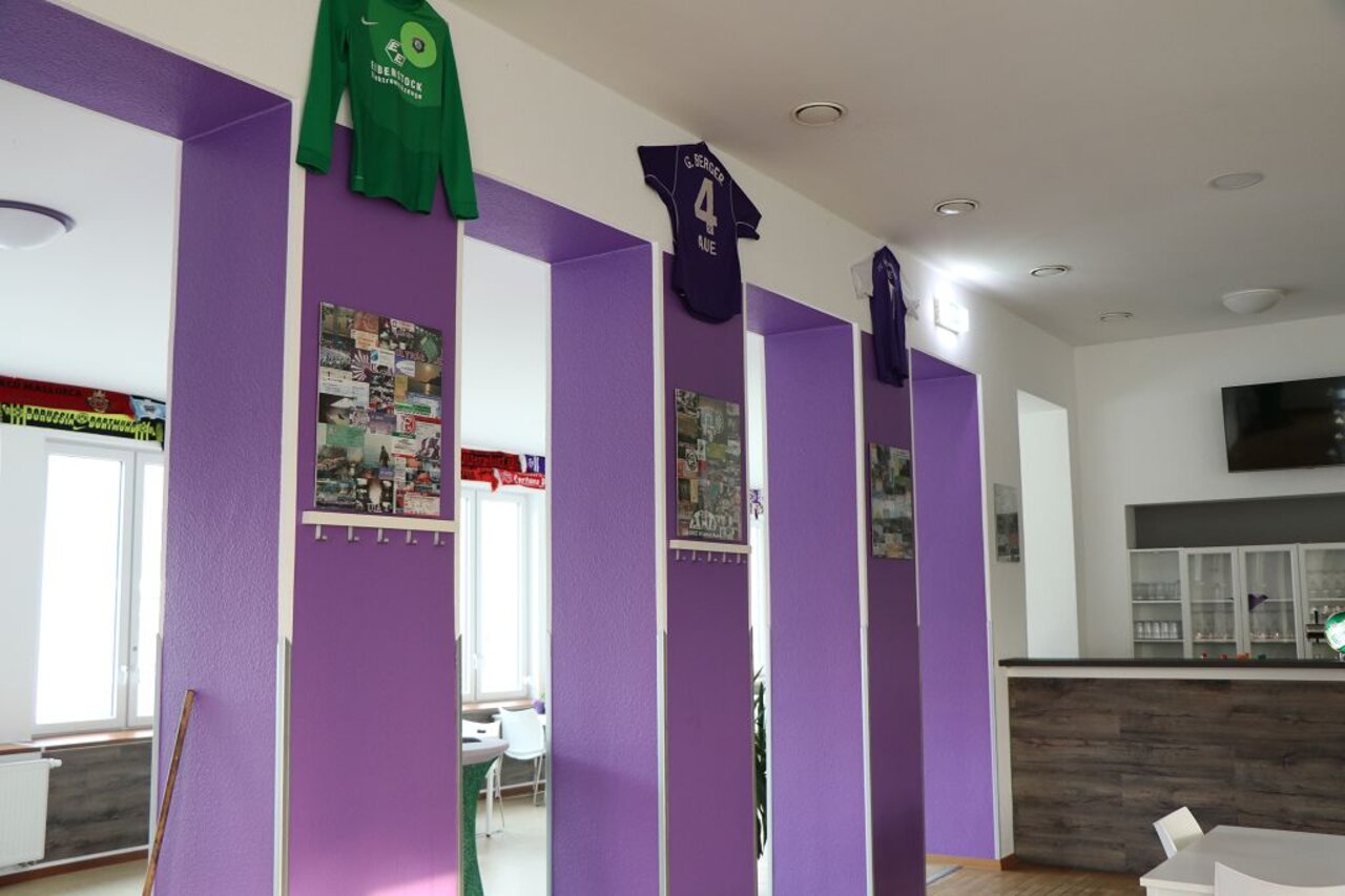 Schon etliche Wimpel und Schals der Veilchen oder internationaler Kultvereine schmücken schon die Wände im „Stadionblick”. Doch noch viele Fanartikel und Zeitzeugen sind gesucht, um unser Sportlerheim so zu gestalten, dass Aue-Anhänger sich hier zu Hause fühlen.