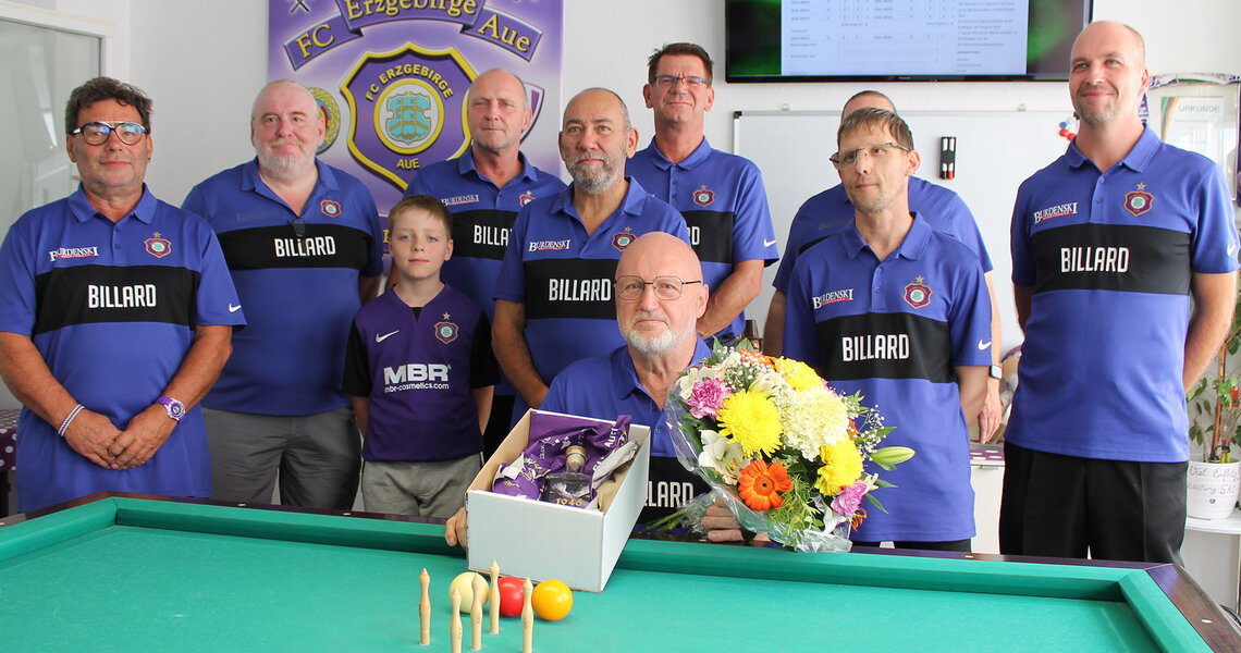 Ralf Martin war mehrfacher Deutscher Meister im Billard und wurde nun für 60 Jahre Vereinstreue beim FC Erzgebirge Aue geehrt.
