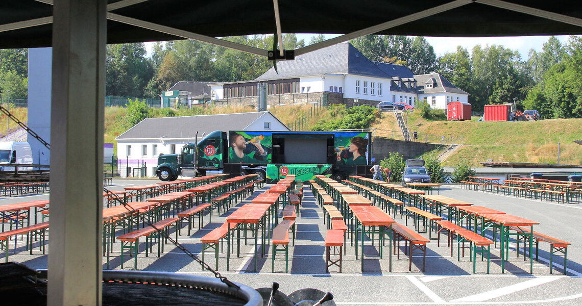 Noch ist Sommerpause im Erzgebirgsstadion, von Ruhe kann dennoch keine Rede sein. Denn am Montagvormittag war „Leistungssport“ zu Gast. Besonders schneller.