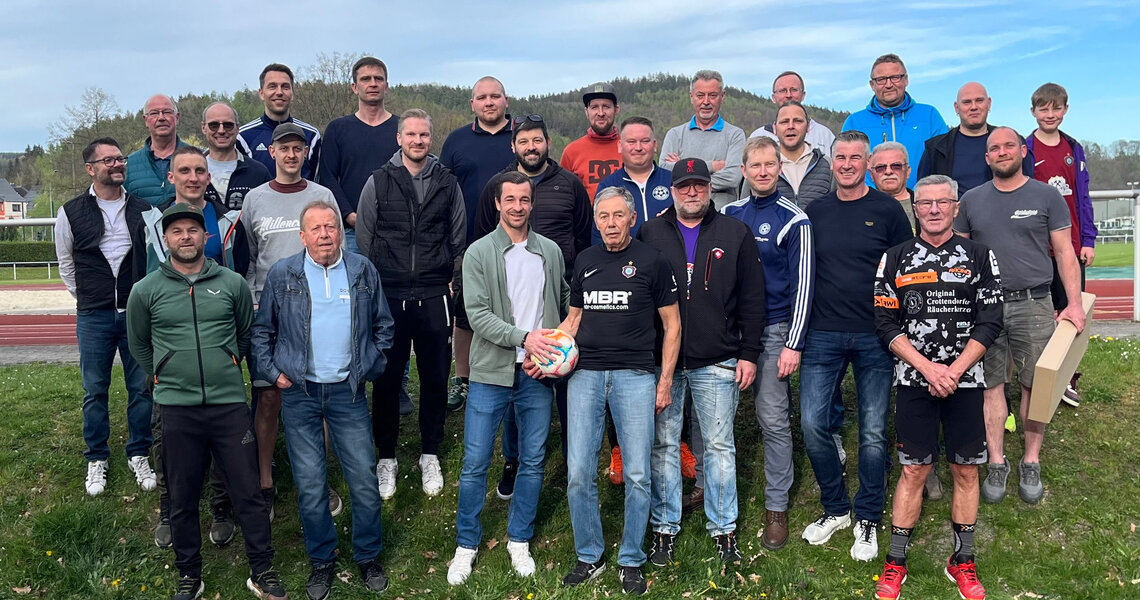 Günter Buczek traute seinen Augen kaum. Der 80-jährige Jubilar sah sein „Idol“ Martin Männel durch das Spalier seiner Schwarzenberger Sportkameraden kommen.