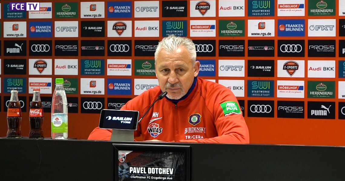 Freitag, 1. April 2022 - 28. Spieltag FC Ingolstadt 04 - FC Erzgebirge Aue 3:2 (2:0) Zuschauer im Audi Sportpark: 4.189; darunter 377 FCE-Fans DIE PRESSEKONFERENZ NACH DEM SPIEL MIT RÜDIGER REHM UND...