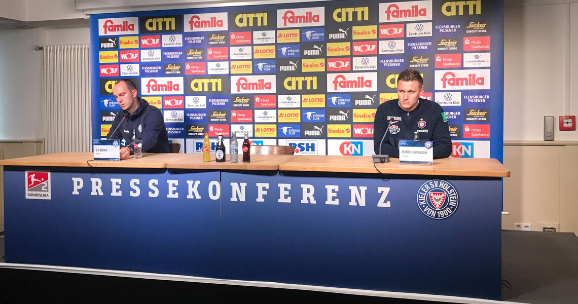 2. Bundesliga Saison 2021/2022 - 5. Spieltag Holstein Kiel - FC Erzgebirge Aue 3:0 (2:0) Zuschauer im Kieler Holstein-Stadion: 3848 / darunter ca. 200 FCE-Fans DIE PRESSEKONFERENZ NACH DEM SPIEL MIT...