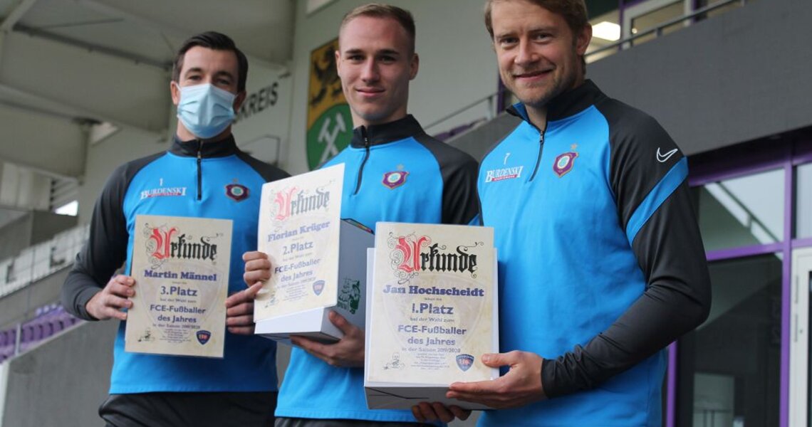 JAN HOCHSCHEIDT ZUM VIERTEN MAL GANZ OBEN Jan Hochscheidt heißt der Aue-Fußballer des Spieljahrs 2019/2020. Bei der jüngsten Umfrage des Fanprojekts Aue und der Fanbetreuung des FCE erhielt er ...
