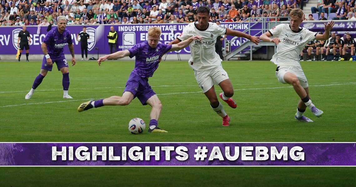 Aue empfing Bundesligist Gladbach zum Härtetest – zeigte gute Ansätze, traf zweimal Aluminium, unterlag am Ende mit 0:3. Die Highlights im Video.