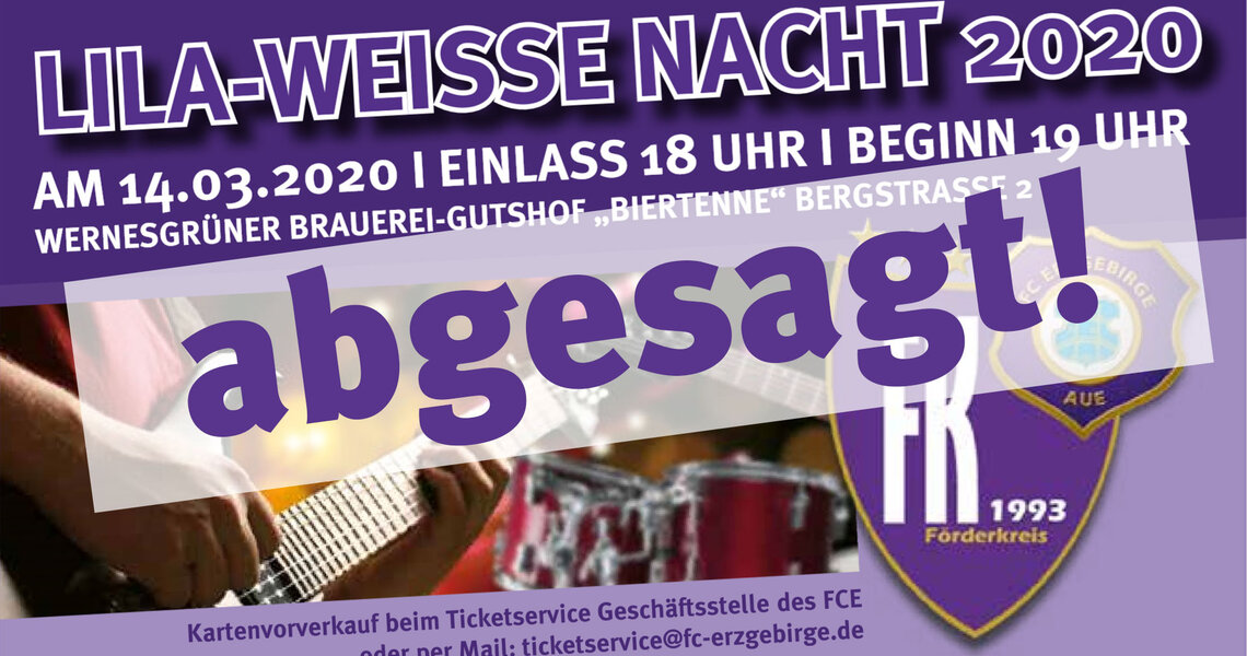 Liebe Sponsoren und Partner des FC Erzgebirge Aue, wegen der aktuellen Lage bezüglich der Ausbreitung des Corona-Virus sehen wir uns leider gezwungen, unsere für den 14. März 2020 im Wernesgrüner...