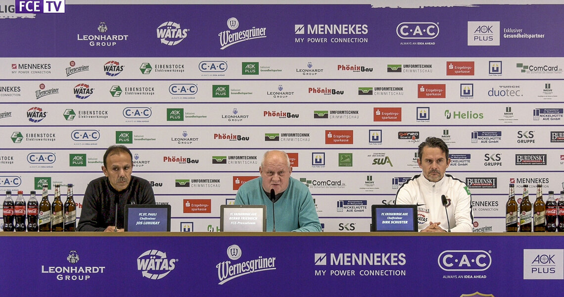 Freitag, 22. November 2019 - 14. Spieltag FC ERZGEBIRGE AUE - FC ST. PAULI 3:1 (2:0) Zuschauer: 14.000 im Erzgebirgsstadion Aue Die Pressekonferenz nach dem Spiel mit den Cheftrainern ...