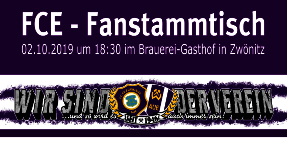 Am Mittwoch, den 2.10.2019 steht der erste FCE-Fanstammtisch in dieser Saison auf dem Plan. Zu Gast sind wir diesmal in Zwönitz, und zwar im Brauerei-Gasthof in der Grünhainer Str. 15. Los geht's um...