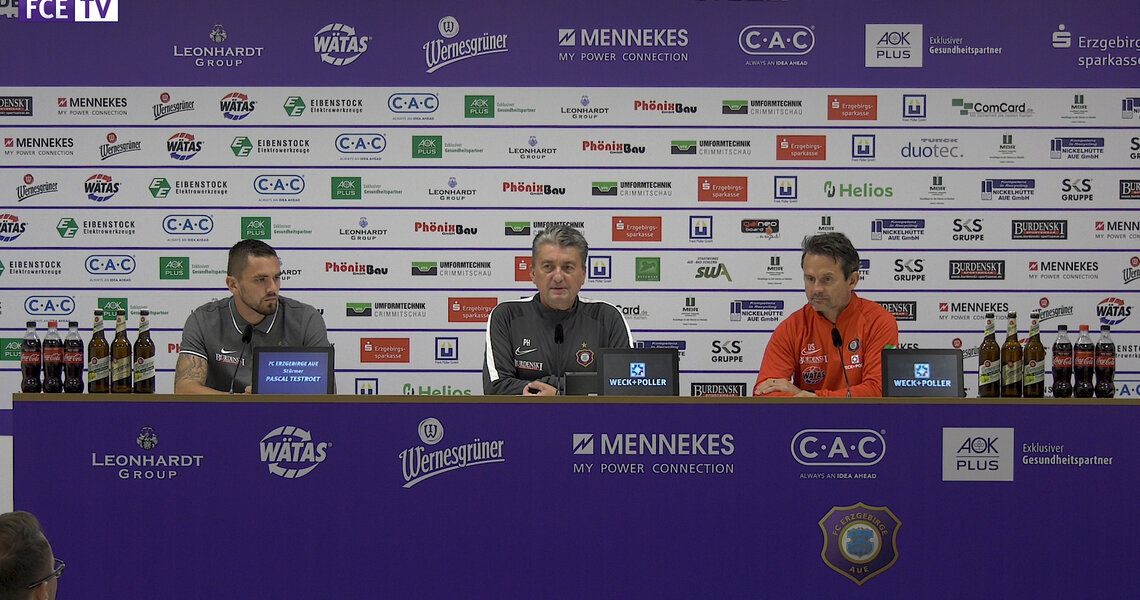 Die Pressekonferenz mit Veilchen-Cheftrainer Dirk Schuster und Pascal Testroet ...